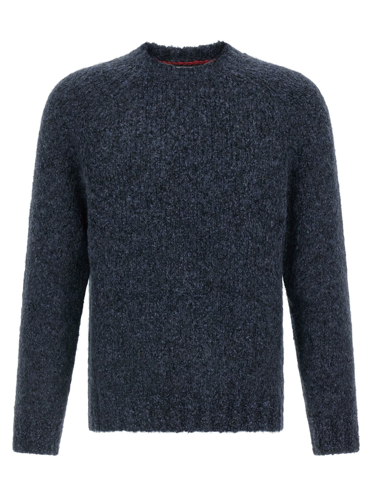 Sweater in alpaca buttoned yarn, virgin wool and cashmere, crew neck, long raglan sleeves with cuffs. Size and Fit - true to size fit