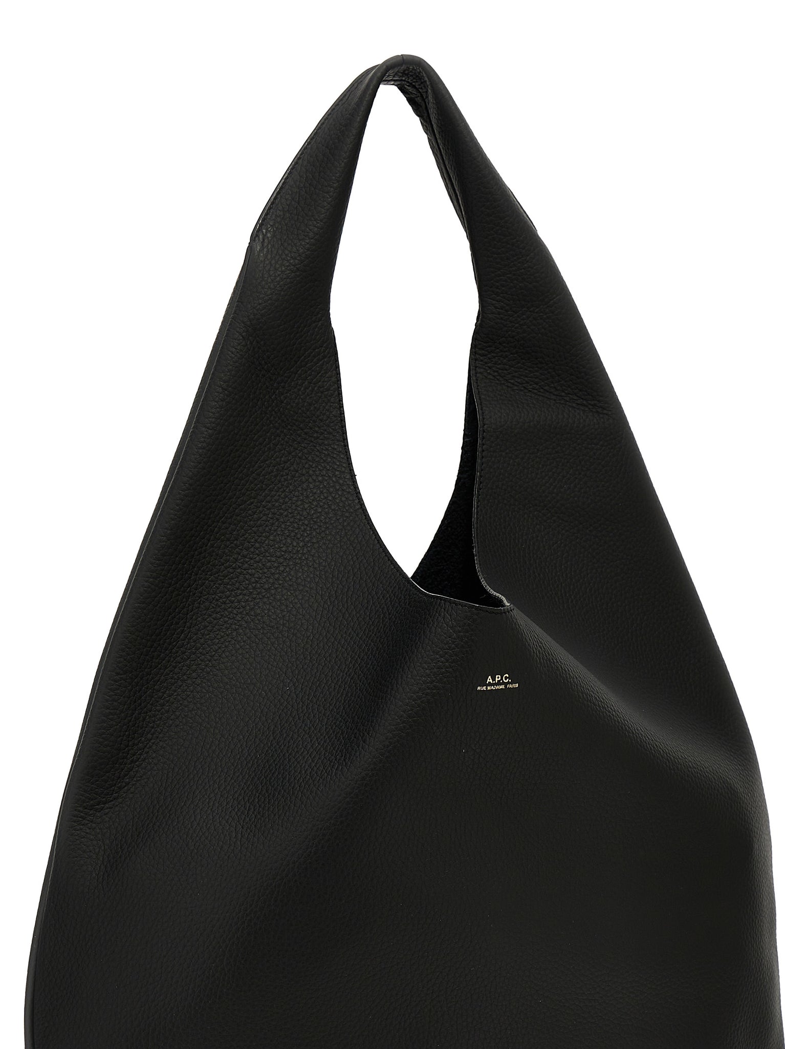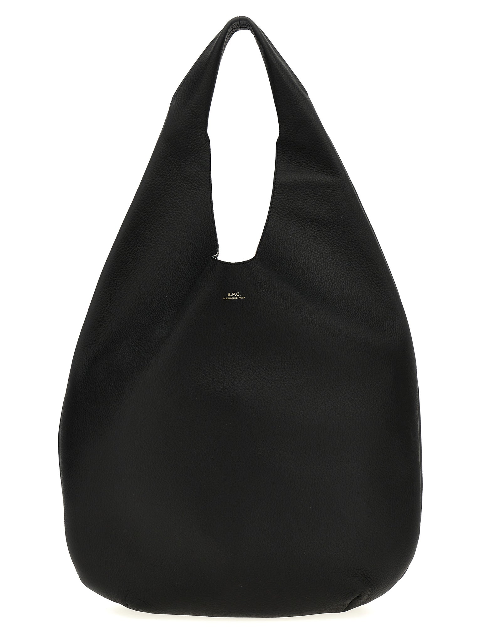 'Le Neige' shoulder bag stitched from a single piece of leather, front embossed logo, single handle. Size and Fit - W 41.5 x H 37 cm