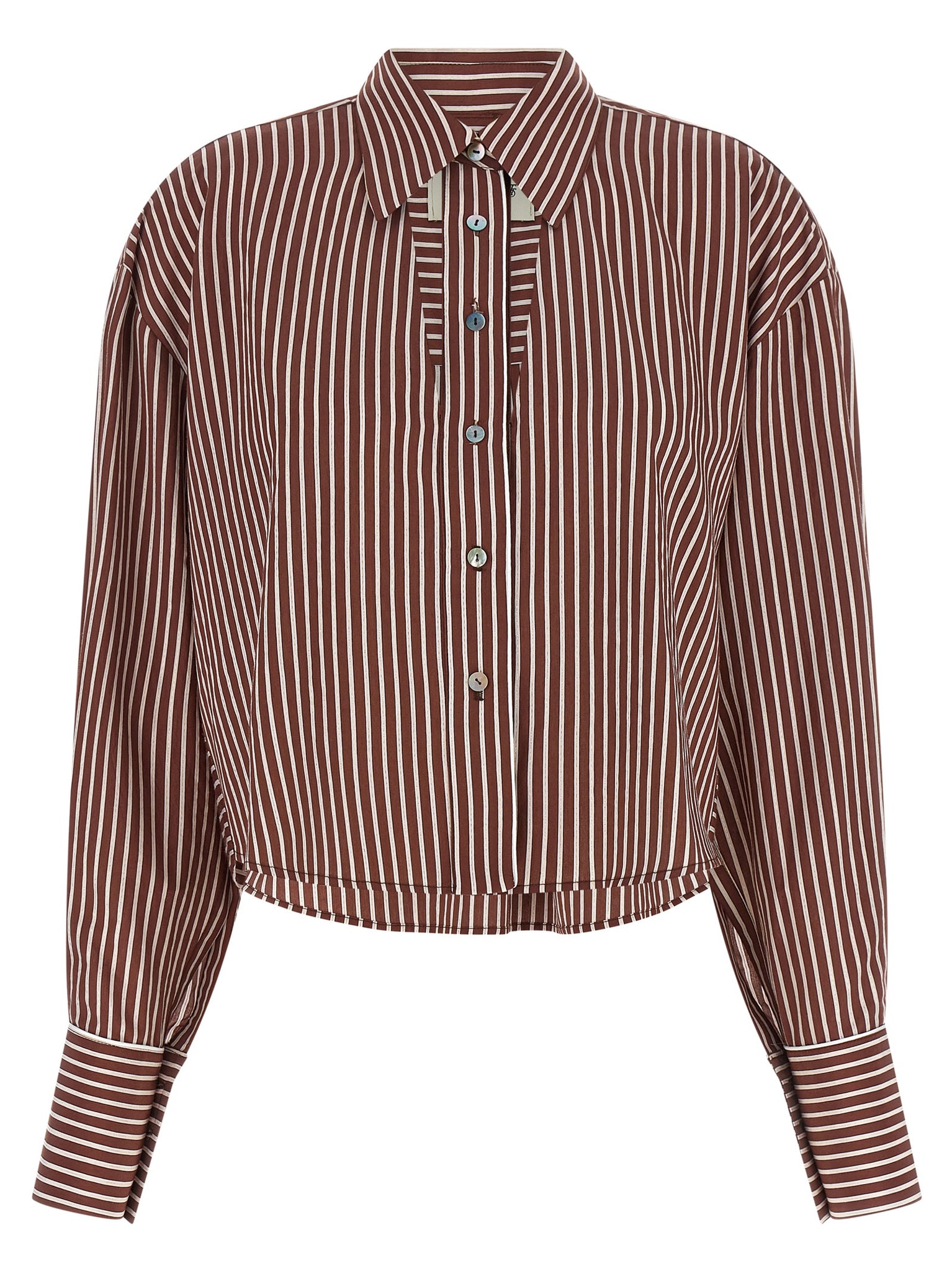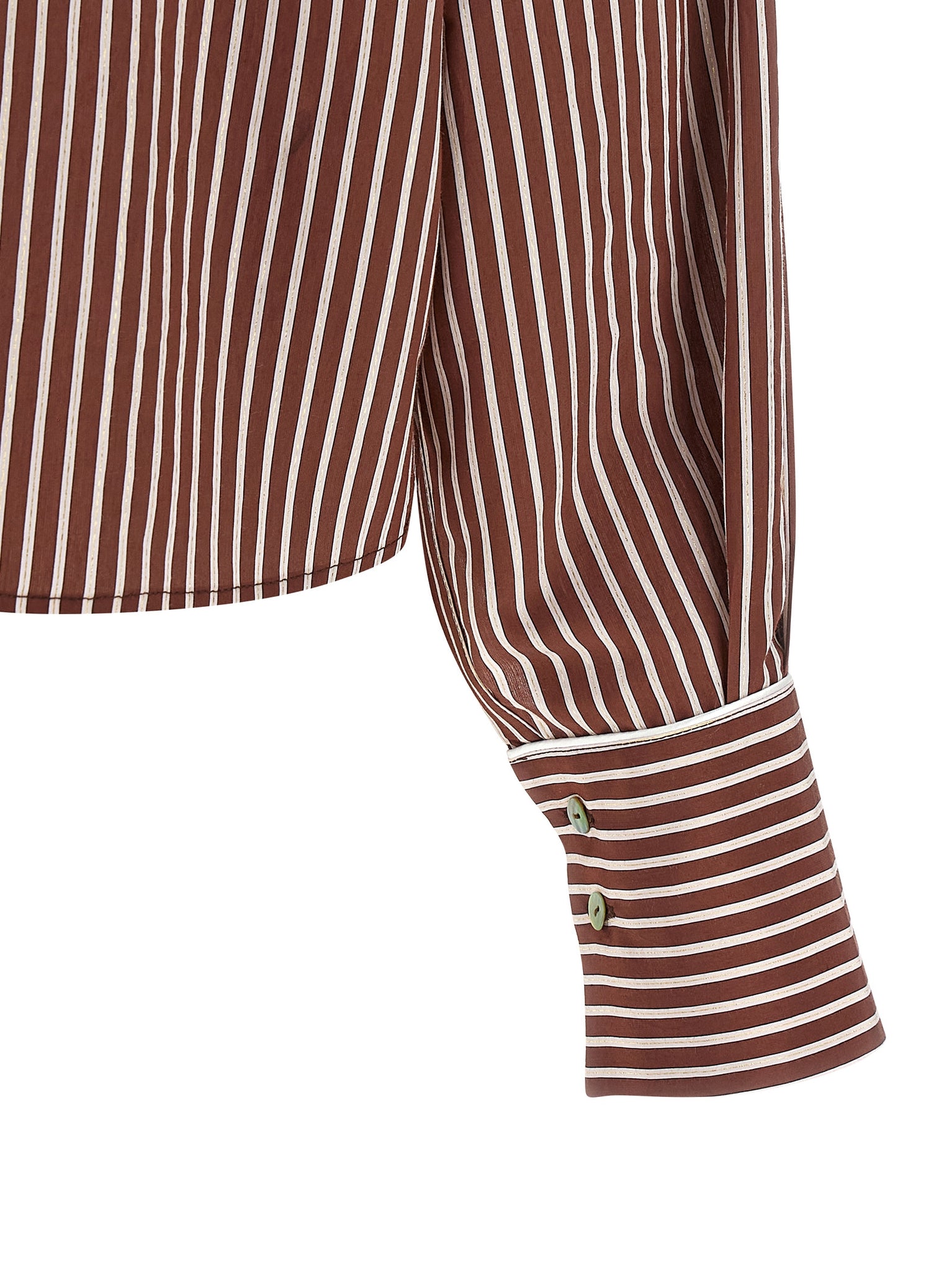 'luna' striped cotton poplin shirt with lamé thread, Slightly cropped style, Pointed collar, Mother-of-pearl button closure with front cut-out details, Long sleeves with cuffs and dropped shoulders, Rounded and asymmetrical hem. Size and Fit - Comfort fitMade in: Italy