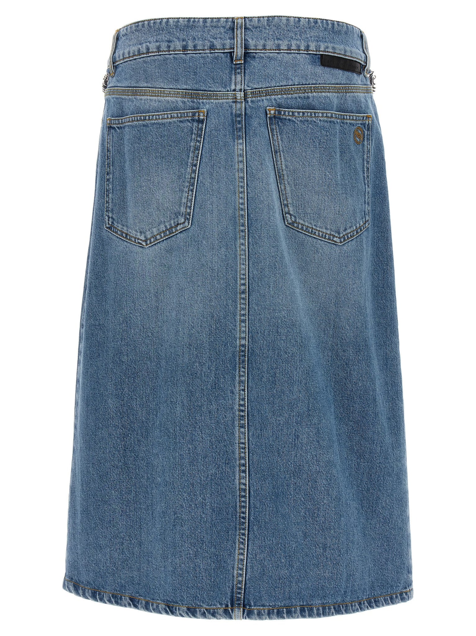 'falabella' cotton denim skirt with chain detail, Zip and button closure, Five pockets, Front split._x000d_ sustainable: this product is made of organic cotton. Size and Fit - true to size fitMade in: Portugal