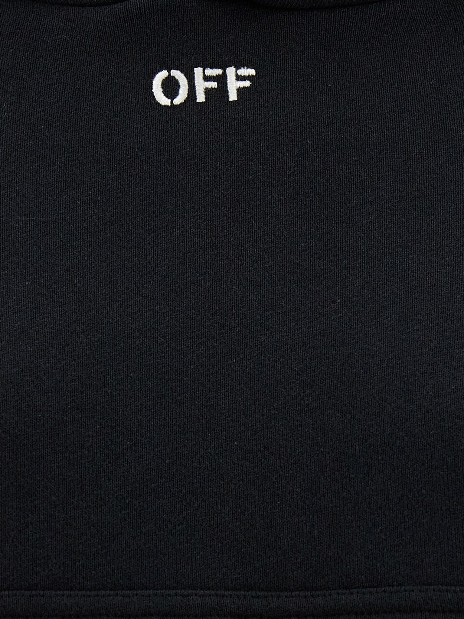 'Off stamp' cotton hoodie with kangaroo pocket and logo embroidery. Size and Fit - true to size fit
