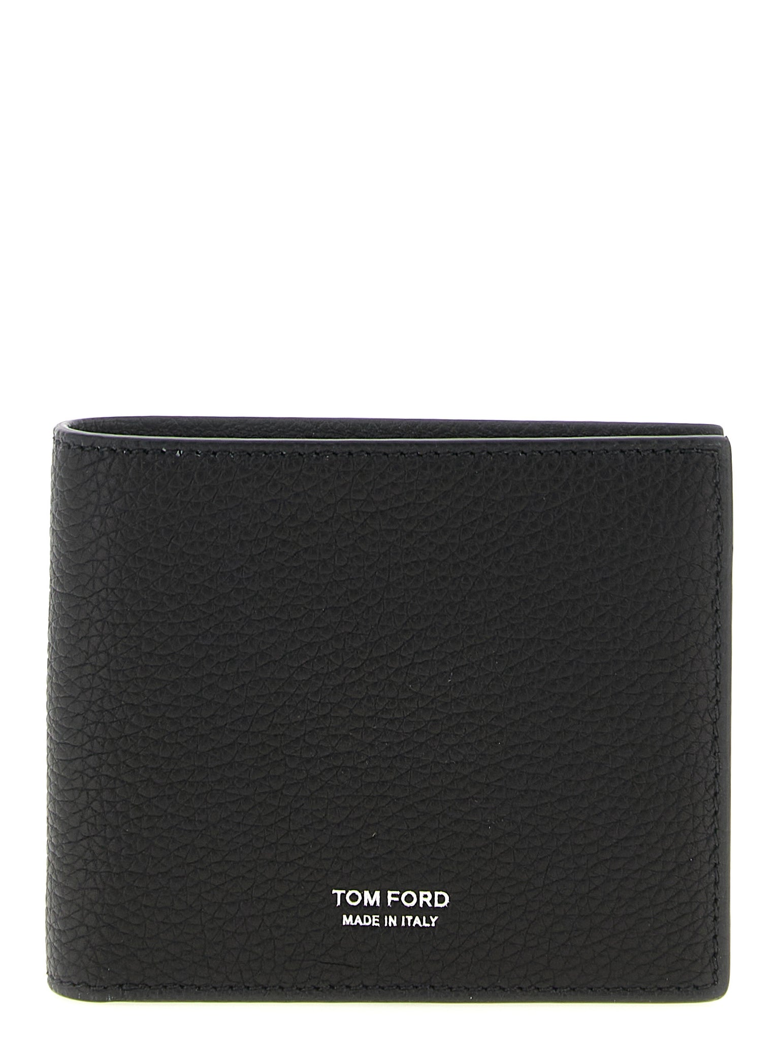 Garnet leather wallet, front embossed logo, book opening. Size and Fit - W 11 x H 9.5 x D 3 cm