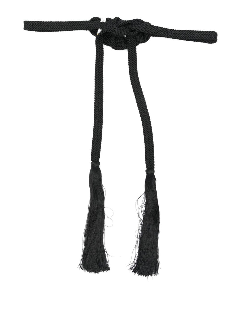 The Forte Forte Black Women's Belt adds refined texture to any outfit. Its woven structure and knotted tassel details bring subtle movement and depth. Designed for versatility, it pairs effortlessly with dresses, trousers, or layered knitwear for a polished finish. Each belt is crafted in Italy with meticulous attention to detail.