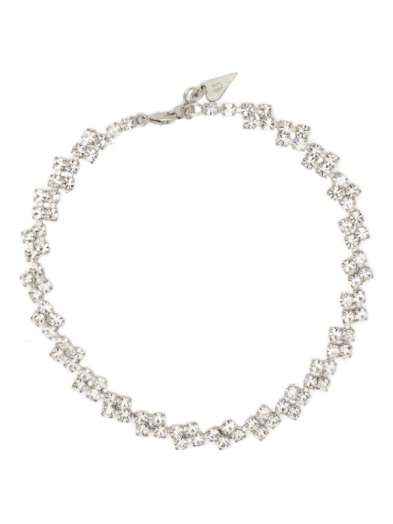 silver-tone crystal embellishments rectangular-shape crystals chain necklace lobster claw fastening heart-shaped tag Crystal collier