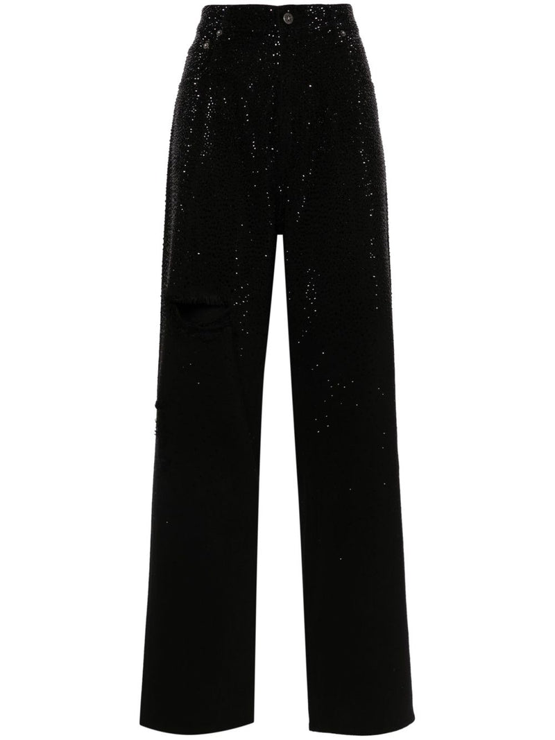 black cotton denim crystal embellishment belt loops ripped detailing classic five pockets logo patch to the rear star stud detailing tapered leg concealed fly and button fastening dritto Denim cotton jeans Size and Fit - This piece fits true to size. We recommend you get your regular size. Model is 1,75m / 5ft 8in wearing size 27 (WAIST CM)Made in: Italy