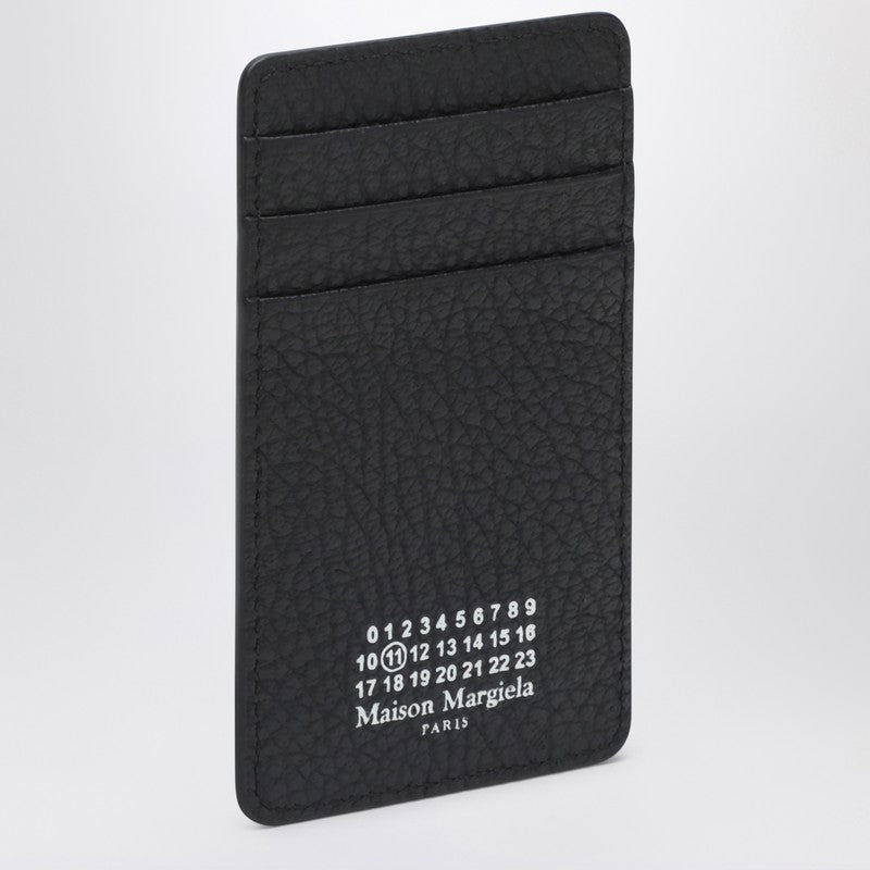Maison Margiela cardholder in black grained leather, featuring a Four Stitches detail on the back, front logo print, and six card slots. Size and Fit - Width 7 cm x Height 12 cm x Depth 0,5 cmMade in: Italy