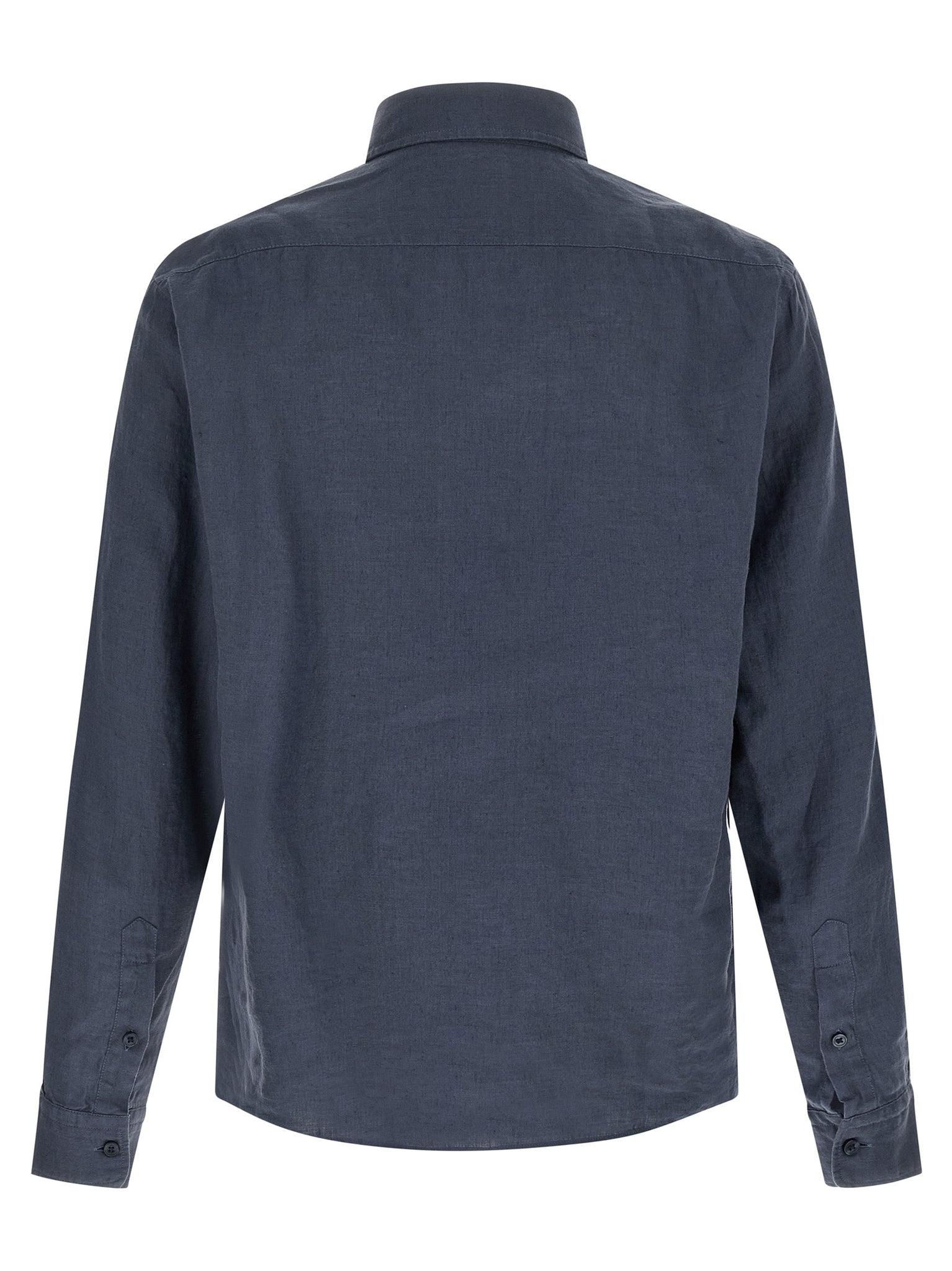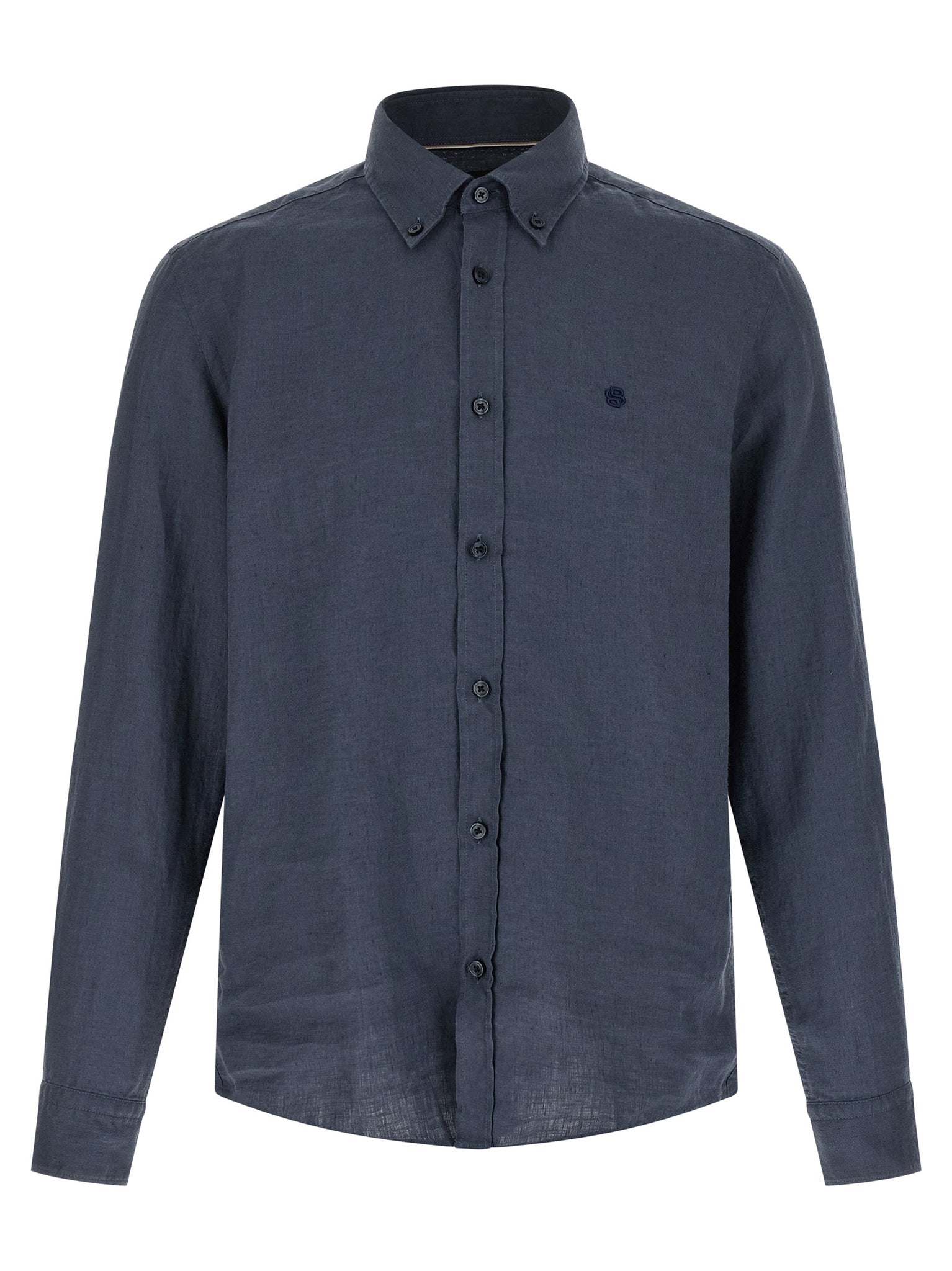 'h-liam' linen shirt, 'button down' collar, Front button closure, Front embroidery, Long cuffed sleeves. Size and Fit - True to size fit