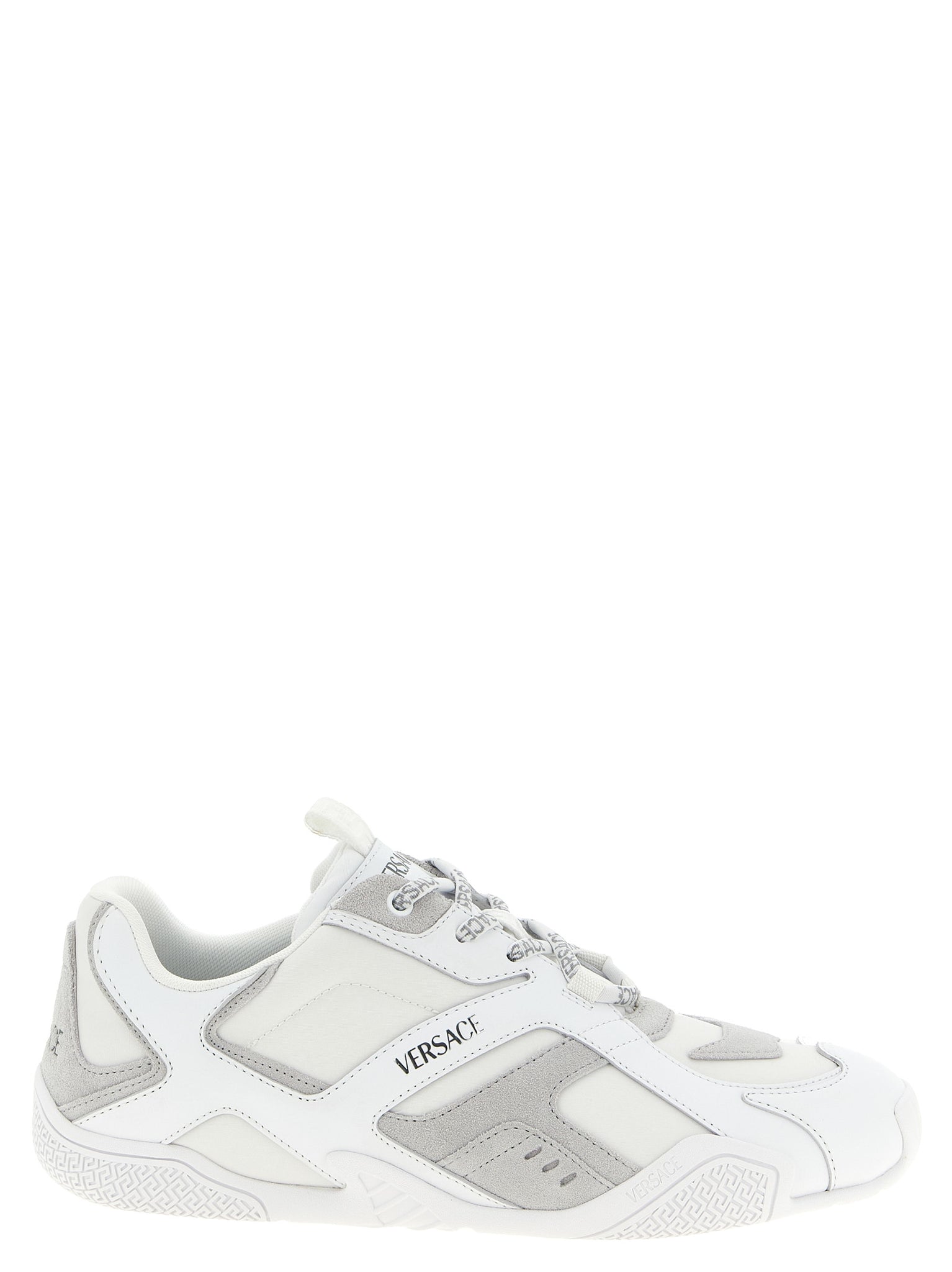 Calfskin, Suede and technical fabric sneakers, Insole with 'galaxia' logo print, Embossed logo on the tongue and heel, Side metal lettering logo, Rounded toe, Lace-up closure, Rubber sole with 'greca' pattern. Size and Fit - EU MEN