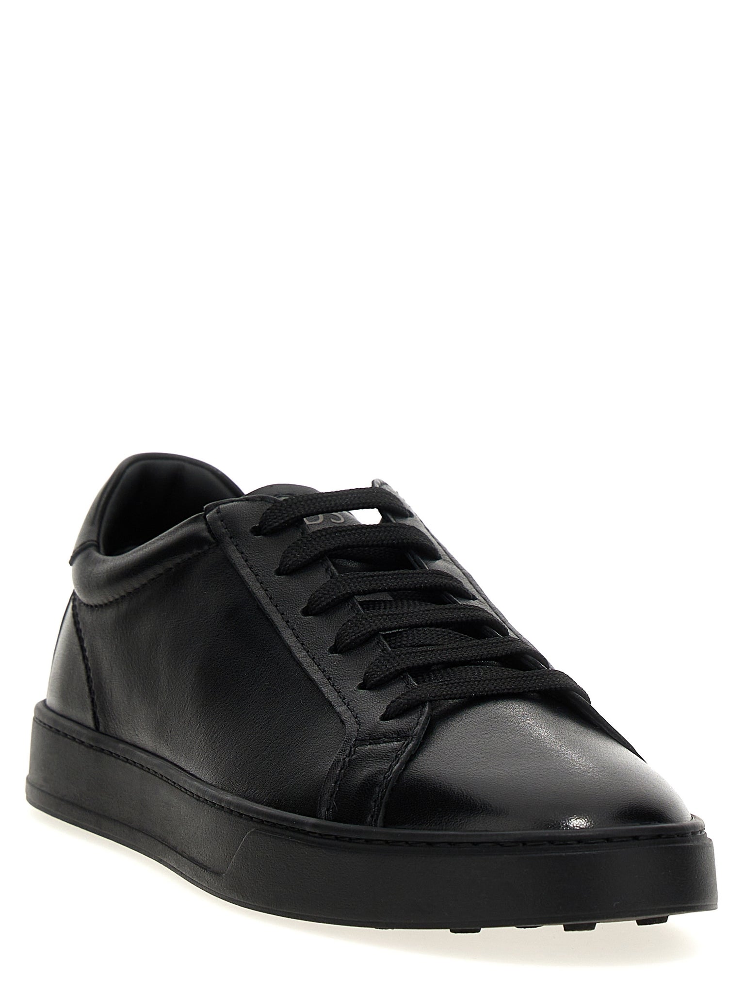 Leather sneakers with laces, rubber sole, rubber gommini detail on the heel. Size and Fit - UK MEN