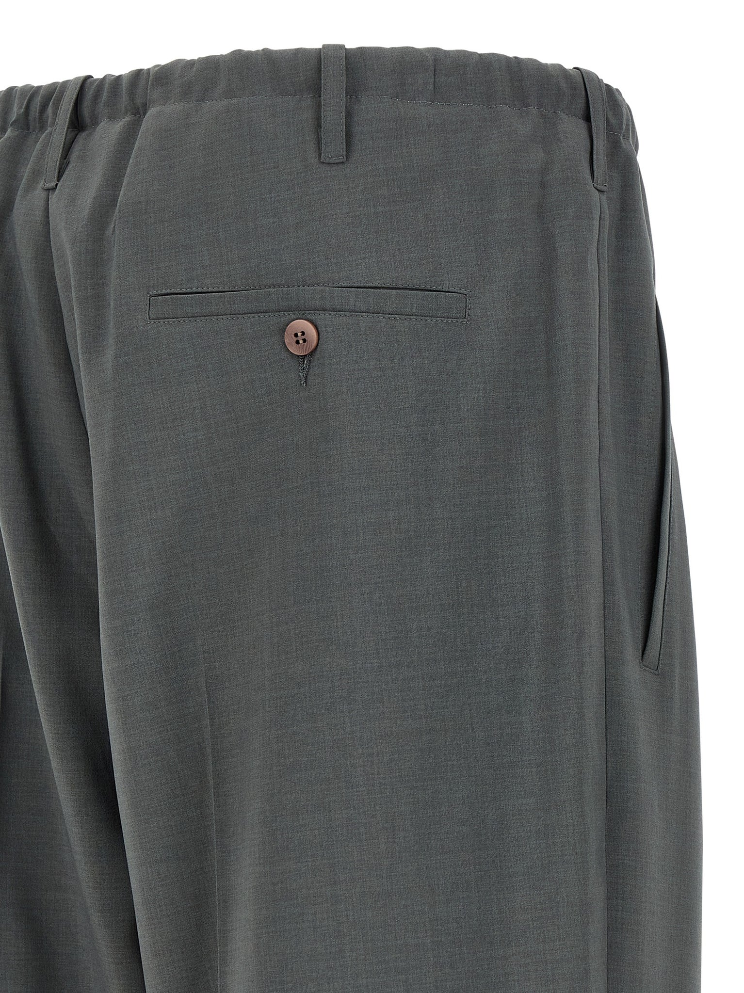 Classic 'people's pant' trousers with front stretched pleat and turn-up hem, Pockets, Zip closure, Elastic waistband with adjustable drawstring. Size and Fit - True to size fitMade in: Italy