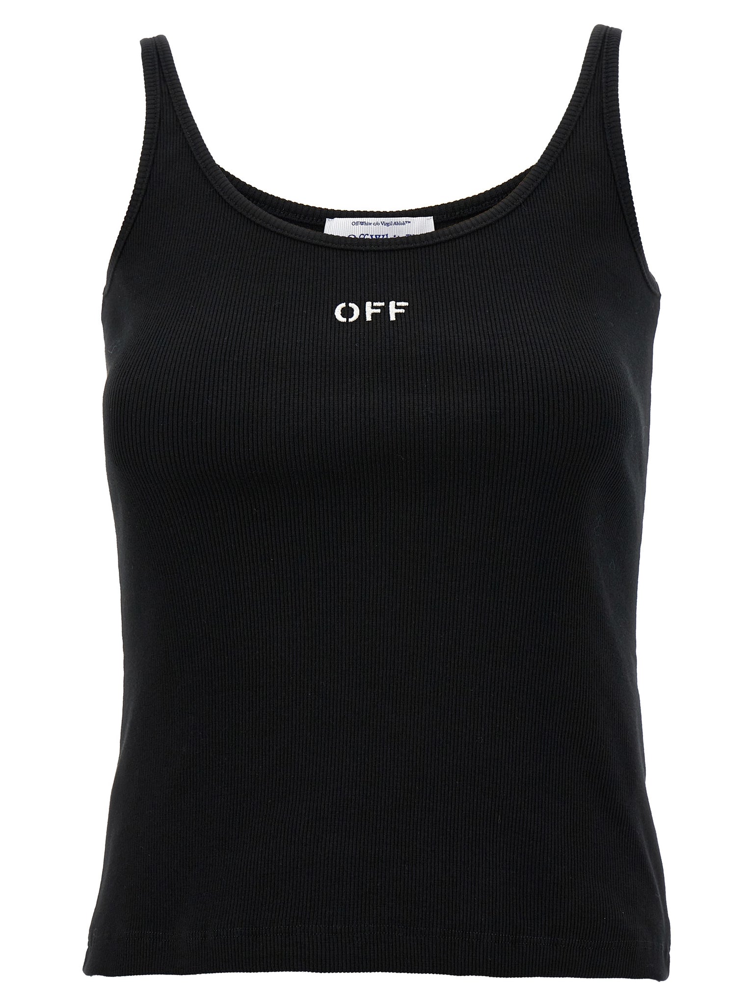 Off White Off Stamp Top — Black Ribbed Cotton Top