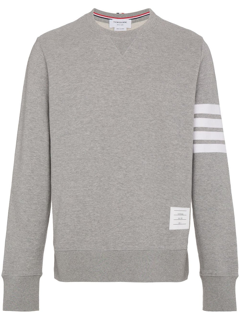 Pebble grey Made from loopback cotton jersey Crew neck with V insert Long sleeves 4-Bar stripe at left arm Name tag appliqué at left side Tricolour grosgrain loop at nape Ribbed trims Straight hem with button side fastening Relaxed fit Crafted in Japan 4Bar cotton crewneck sweatshirt Size and Fit - This piece fits true to size. We recommend you get your regular size. Model is 1,84m / 6ft 1in wearing size 2 (NUM)Made in: Japan