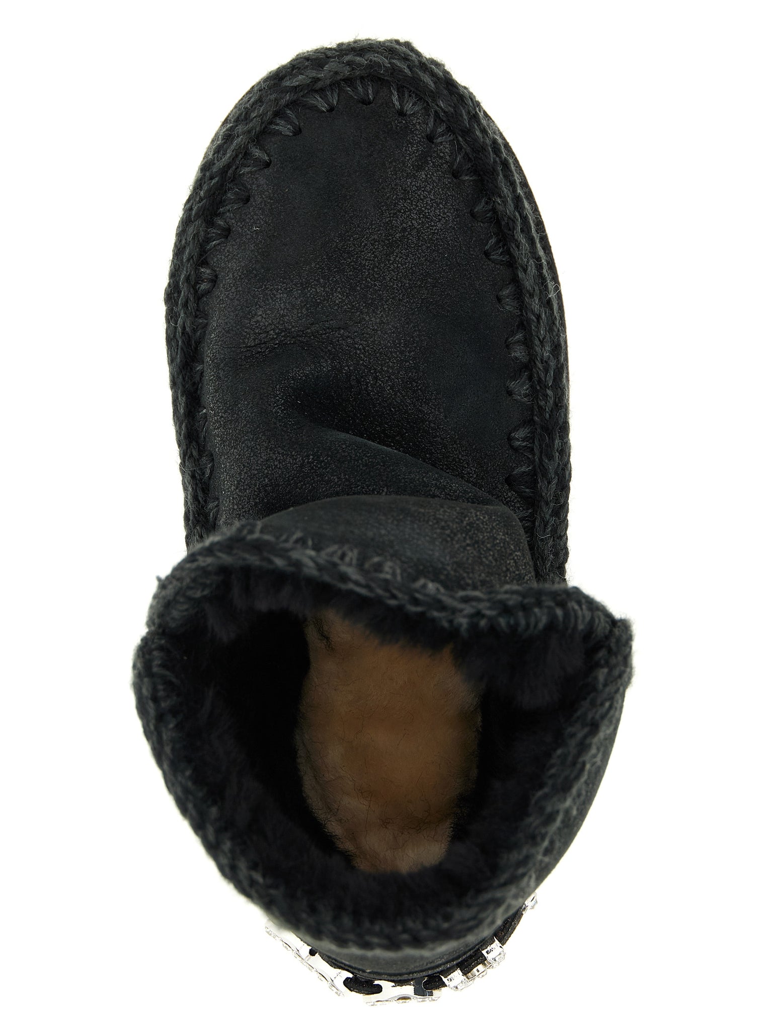 'Eskimo 18 Rhinestone Logo' suede ankle boots with raised stitching, fur lining, rubber sole, back logo. Size and Fit - EU WOMEN