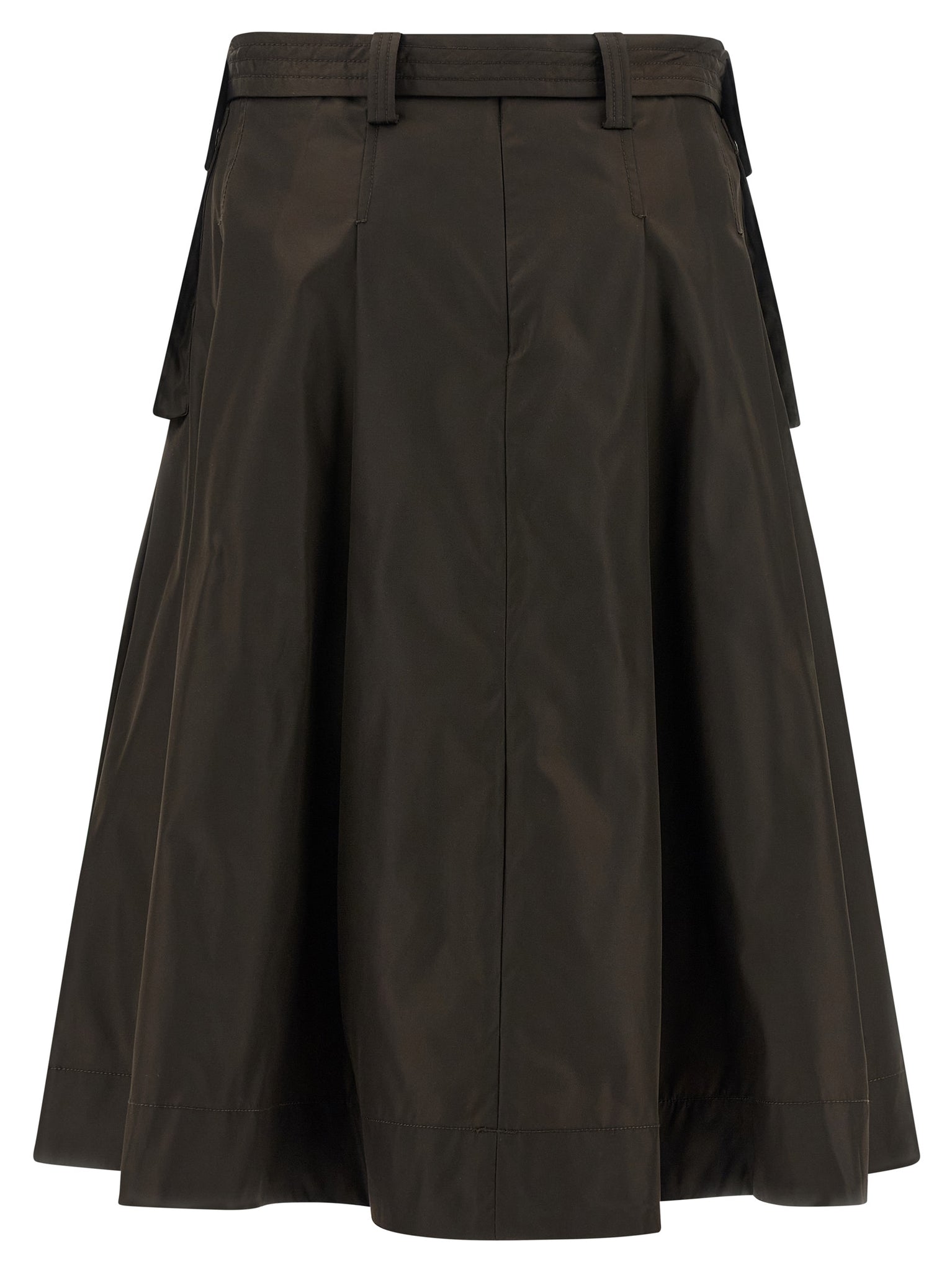 Duchesse nylon 'Duchesse Nylon Pleated' midi skirt, pleated style with flared silhouette, front pockets, back zip closure, unlined, removable belt. SUSTAINABLE: Product made with recycled polyamide. Size and Fit - true to size fit - EU size