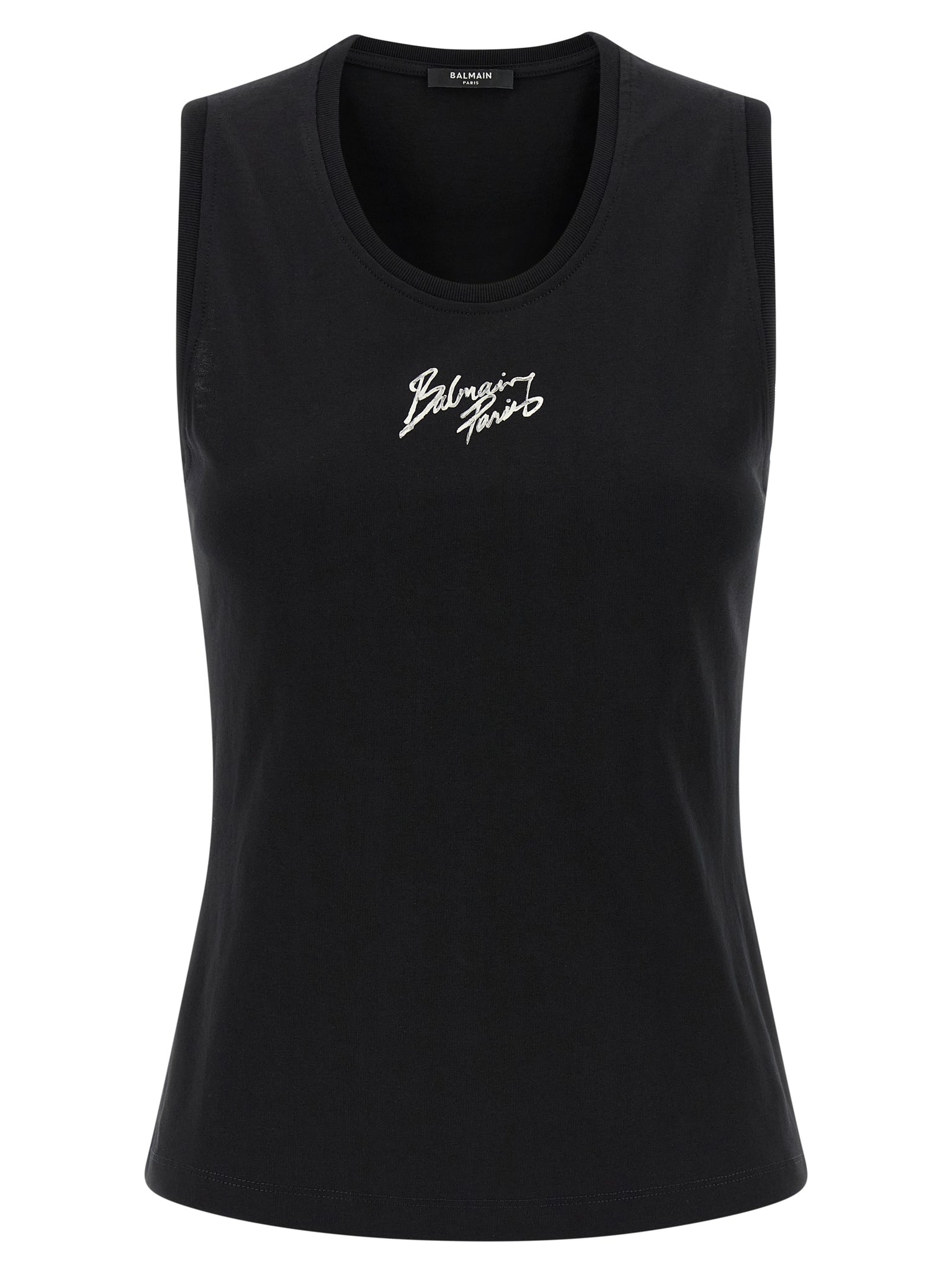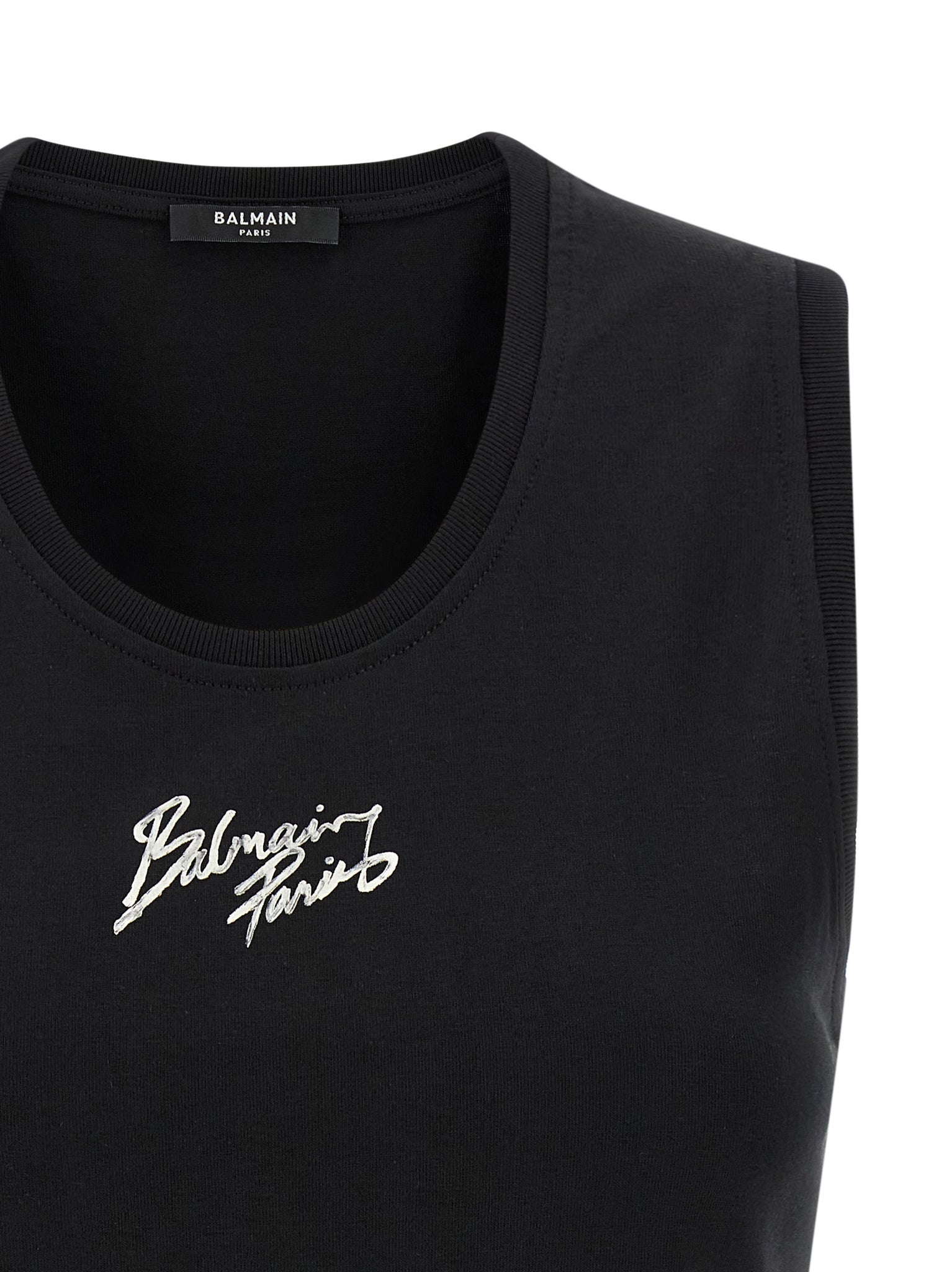 Cotton top with round neckline, Front 'balmain paris' print, Sleeveless.Made in: Portugal