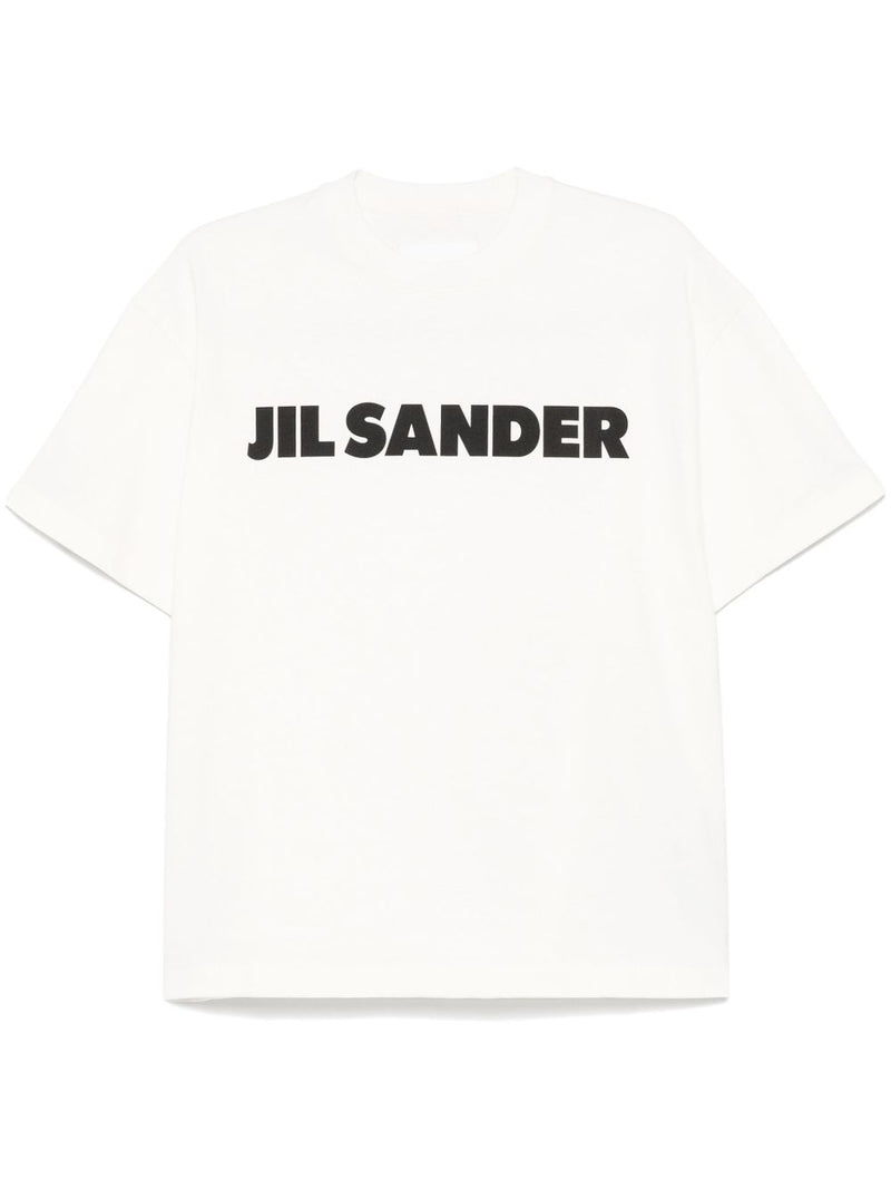 This Jil Sander white cotton logo tee offers a clean crew neck and straight hem with short sleeves for an easy, polished look. The lightweight cotton feels breathable while the subtle logo adds refined branding without overpowering outfits. It fits true to size—model is 1.75m / 5ft 8in wearing size S—making it simple to choose your regular size.