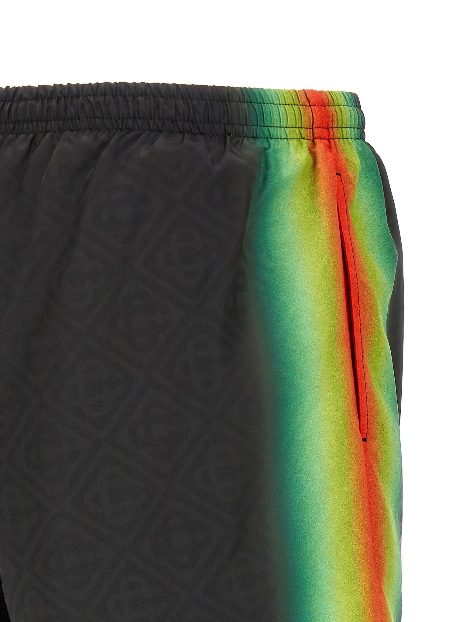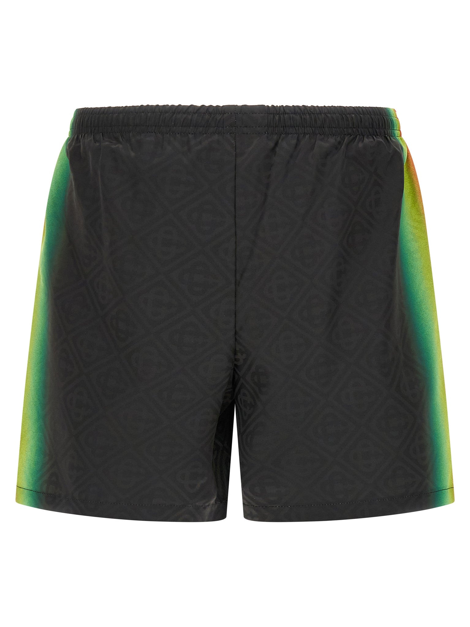 Swimsuit in technical fabric with diamond-shaped logo of the all-over jacquard maison, Front logo print, Elastic and drawstring at the waist, Trompe l'oeil flap, Pockets, Inner mesh briefs. Size and Fit - true to size fit