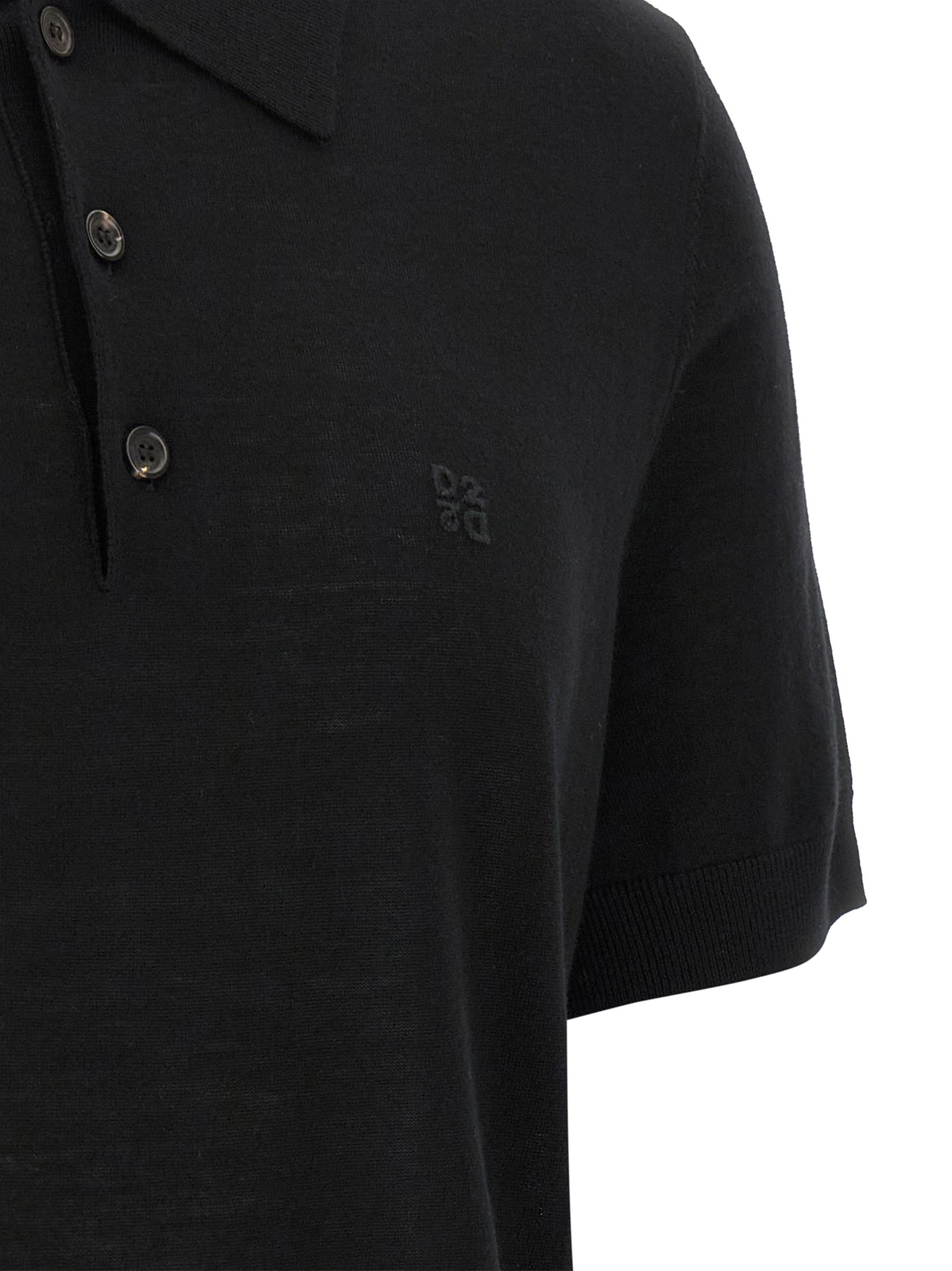 Light wool polo shirt with tone-on-tone logo embroidery on the front, Collar and buttons, Short sleeves with cuffs. Size and Fit - true to size fitMade in: China