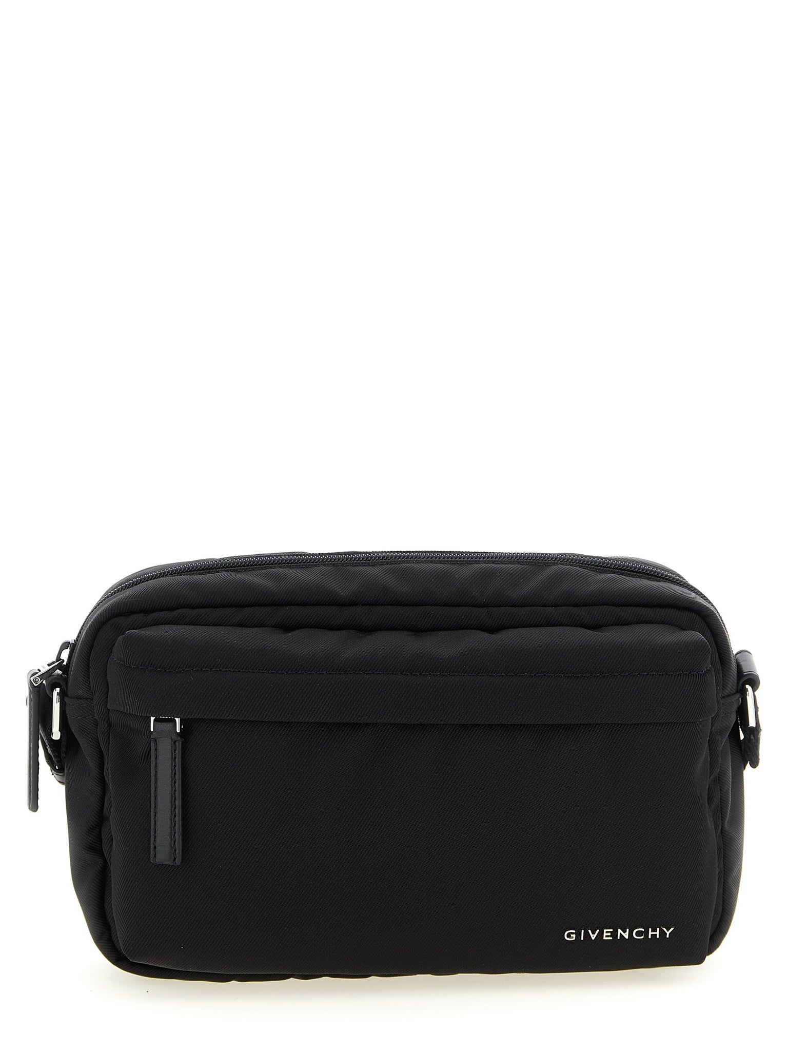 Nylon shoulder strap, 'essential u' line, Metal lettering logo and front zip pocket, Top zip closure, Back pocket, Adjustable givenchy webbing shoulder strap. Size and Fit - W 25 x H 15 x D 11 cm
