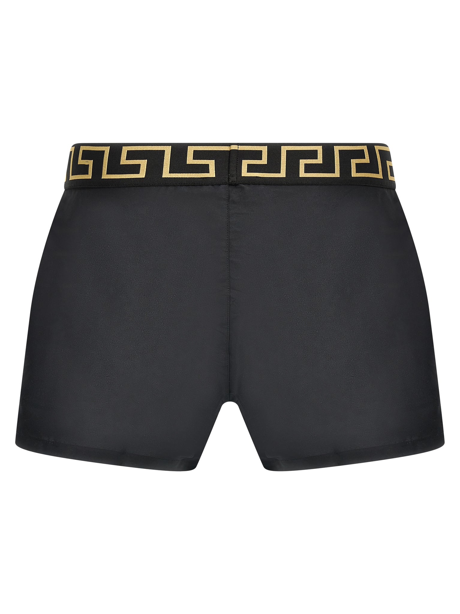 Nylon swimsuit with 'Greca' elastic waistband, pockets, inner mesh briefs. Size and Fit - True to size fit