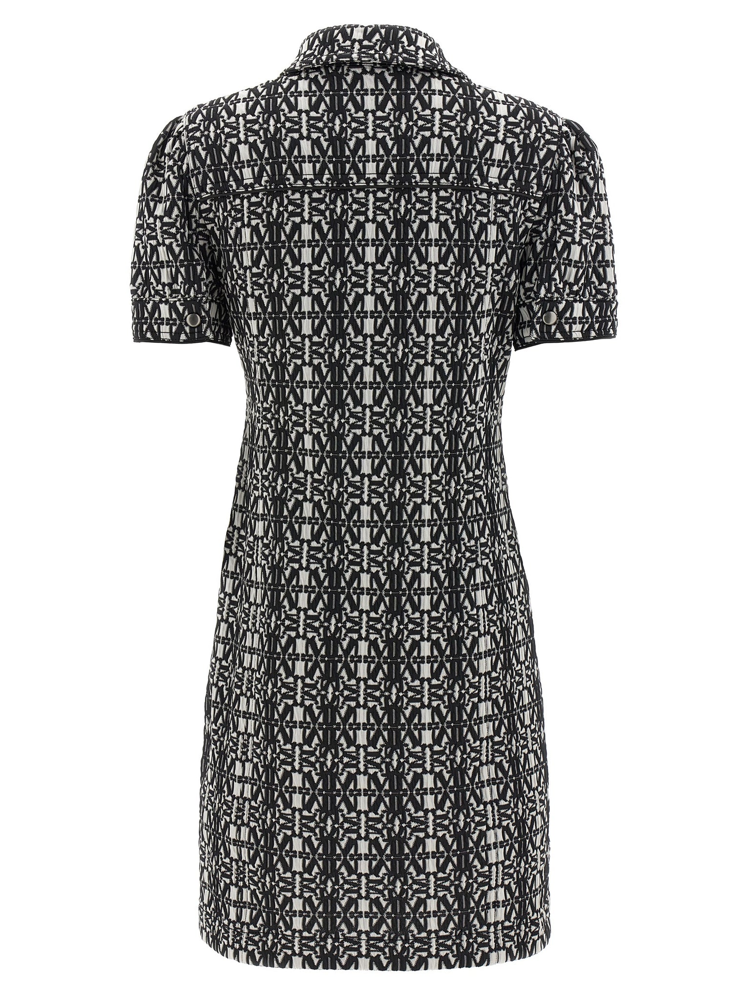 Discover a tailored short-sleeve jersey dress featuring an all-over jacquard logo that elevates everyday wear. The collar with button front and practical front pockets combine polish with functionality, while the true-to-size cut offers a confident fit. Designed for adult women in a White/Black palette, this Max Mara piece suits polished casual and refined daytime looks.