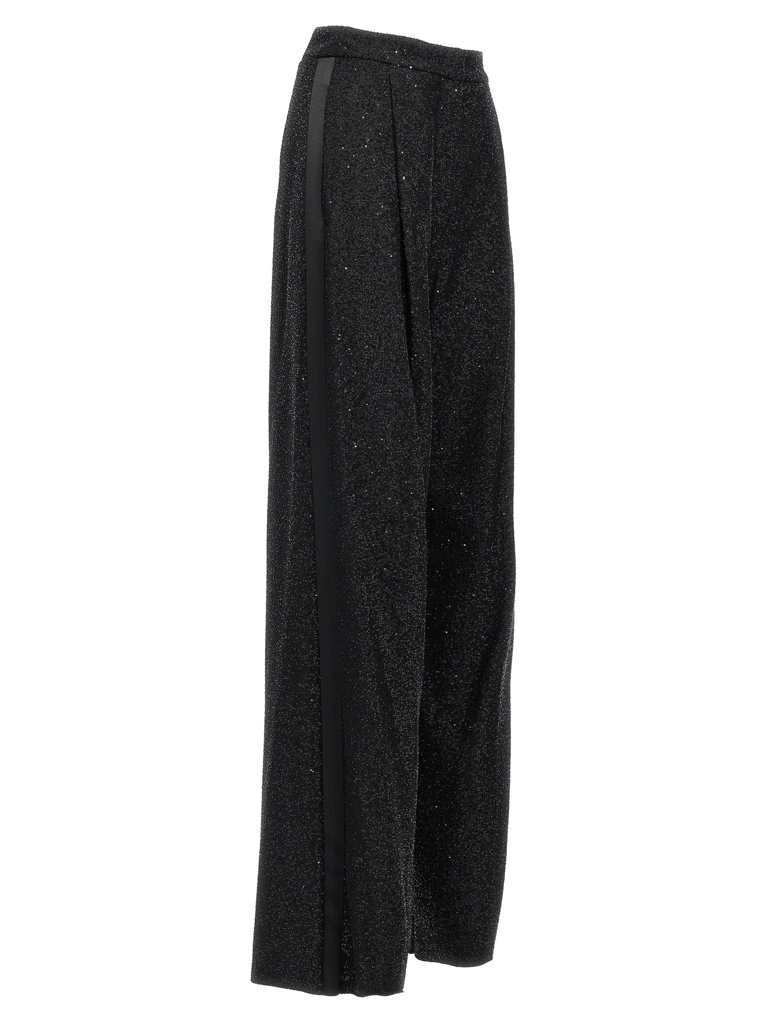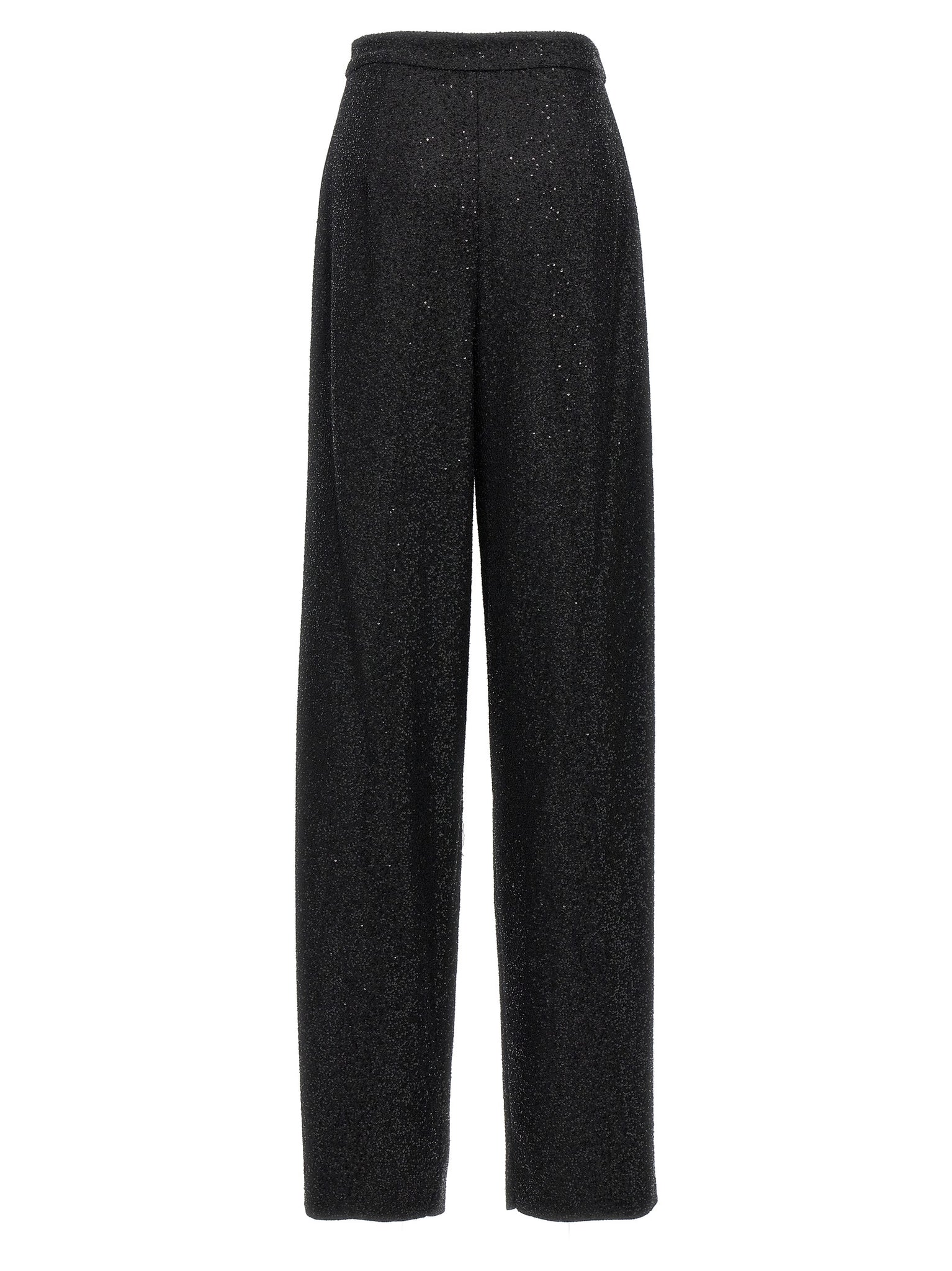 Navigli' wool blend pants with all-over micro sequin appliqué, Satin side bands, Zip and hook closure, Pockets, Pin tucks and wide leg. Size and Fit - true to size fit