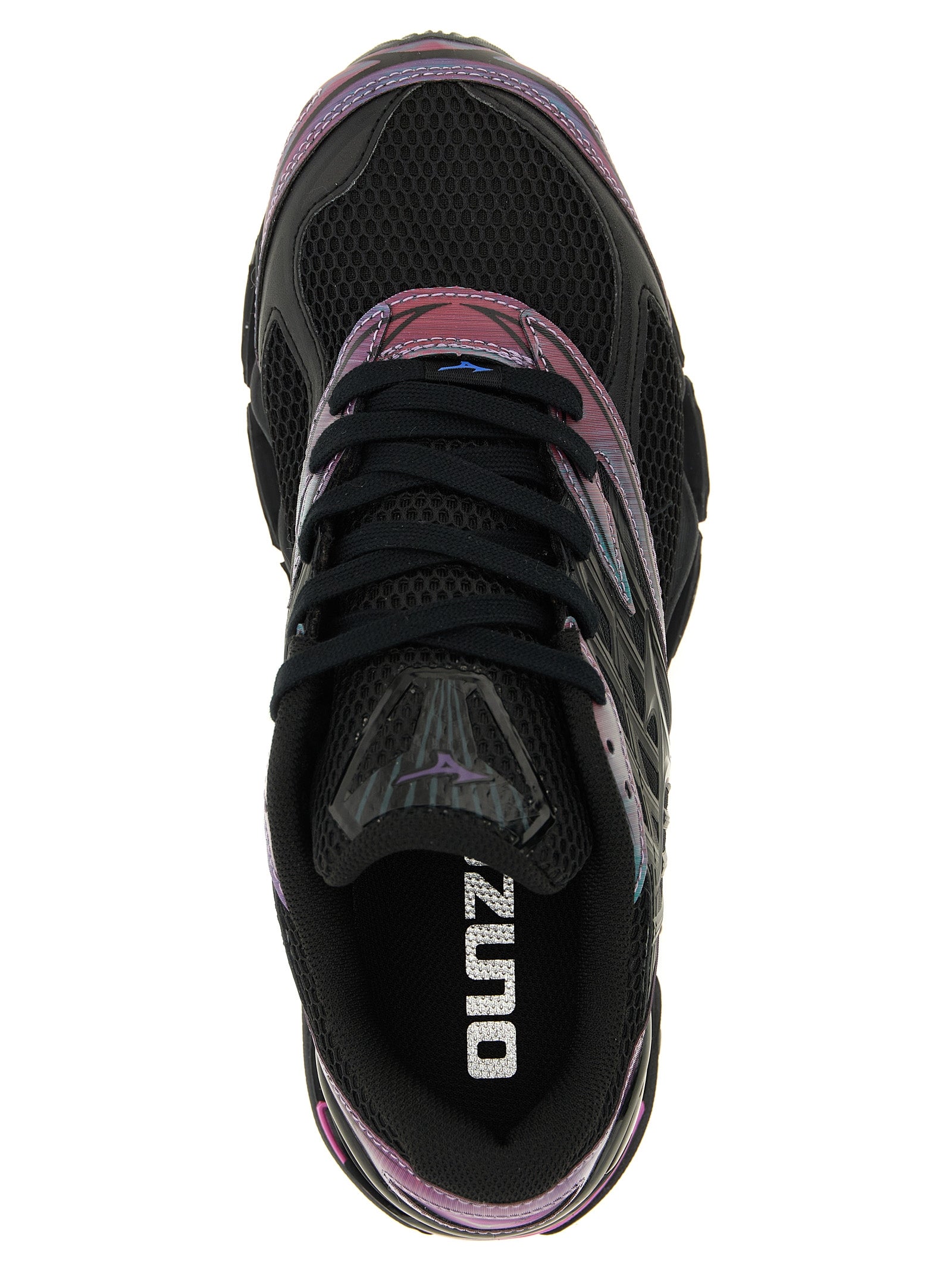 'wave prophecy ls' mesh sneakers with pearlescent inserts, 'ayame' floral embroidery on the tongue, Lace-up closure, Iconic 'infinity wave' cushioning, Side support with textured shaped cage, ' support double fan shaped', Midsole with 'u4ic' compound, X10 carbon rubber sole. Size and Fit - UK MENMade in: Vietnam