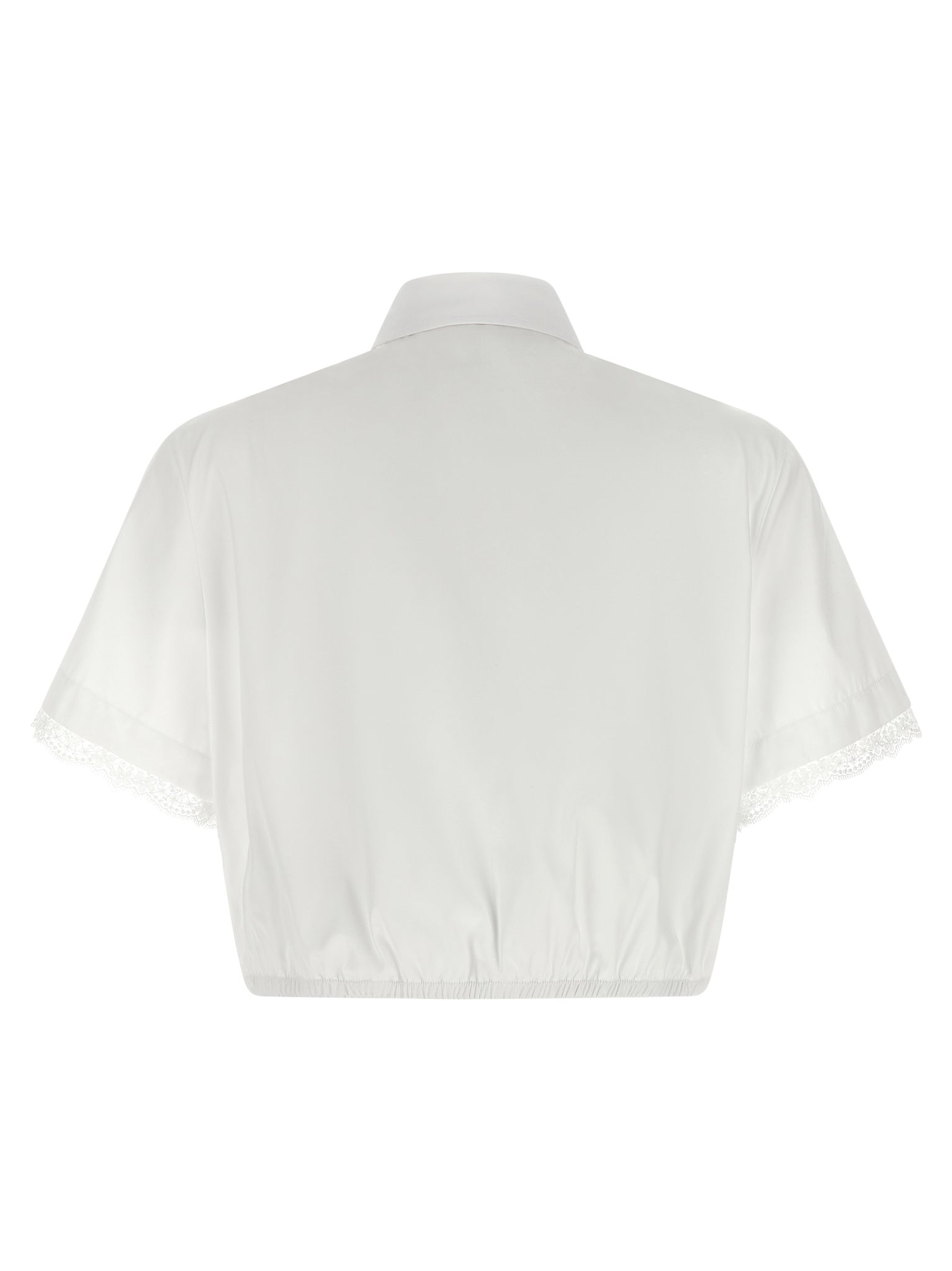 Cotton poplin shirt with tone-on-tone lace inserts, Crop model, Collar and buttons, Short hands with cuffs, Elastic on the hem. Size and Fit - true to size fitMade in: Italy