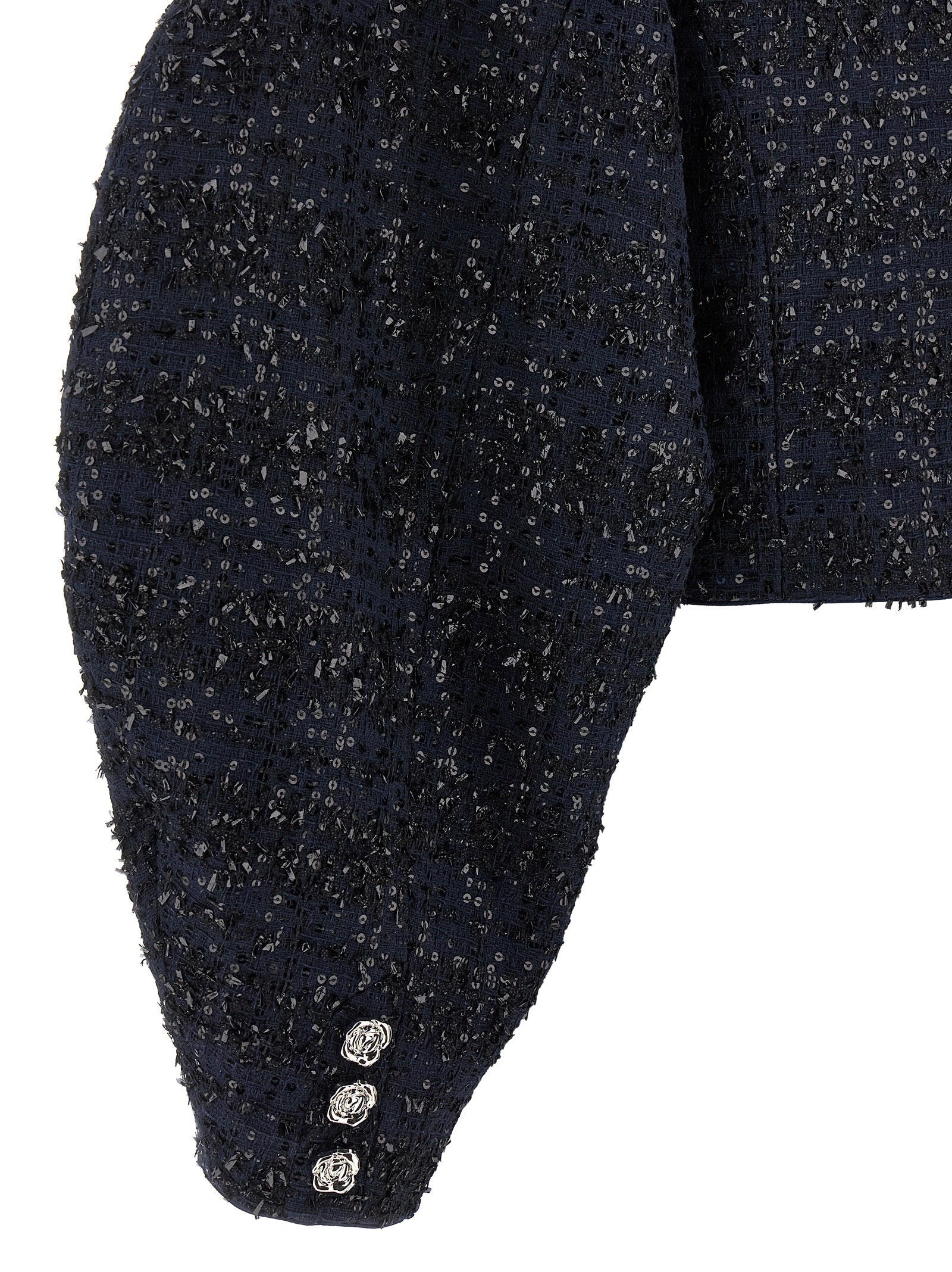 'Bouclé Short' bouclé fabric blazer with all-over sequin appliqué, bolero crop model, front button closure, crew neck, wide long sleeves._x000D_ SUSTAINABLE: Product made from recycled polyester. Size and Fit - true to size fit - GERMAN sizeMade in: China