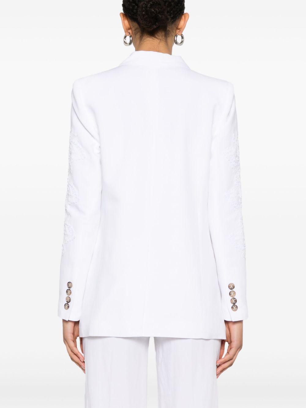 white double-breasted button fastening shoulder pads two front flap pockets full lining d/p Linen and cotton embroidered blazer jacket Size and Fit - This piece fits true to size. We recommend you get your regular size. Model is 1,75m / 5ft 8in wearing size 40 (IT)