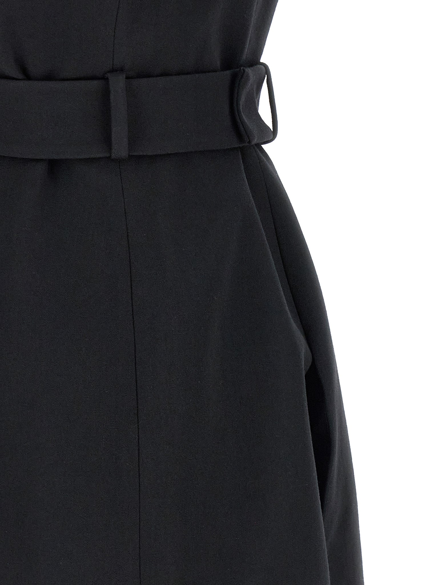 Wallet mini dress in grain de poudre with front button closure, V-neck, Sleeveless, Padded shoulder strap, Pockets, Lining, Belt with removable metal 'anthem' buckle. Belt.Made in: Poland