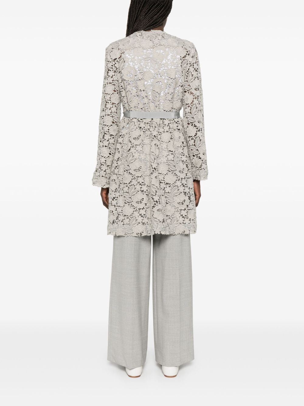 Parosh macramé coat with tied waist