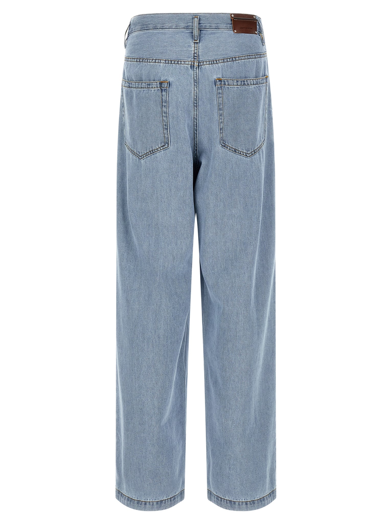 Discover the Dries Van Noten Penning Den Jeans in light blue cotton denim, designed with pleats and a wide leg for comfortable movement and a modern silhouette. These jeans feature contrast stitching, a front button closure, five pockets and a leather logo label at the back, offering practical details with elevated finishing. The fit is true to size to help you choose confidently when comparing sizes and styles.