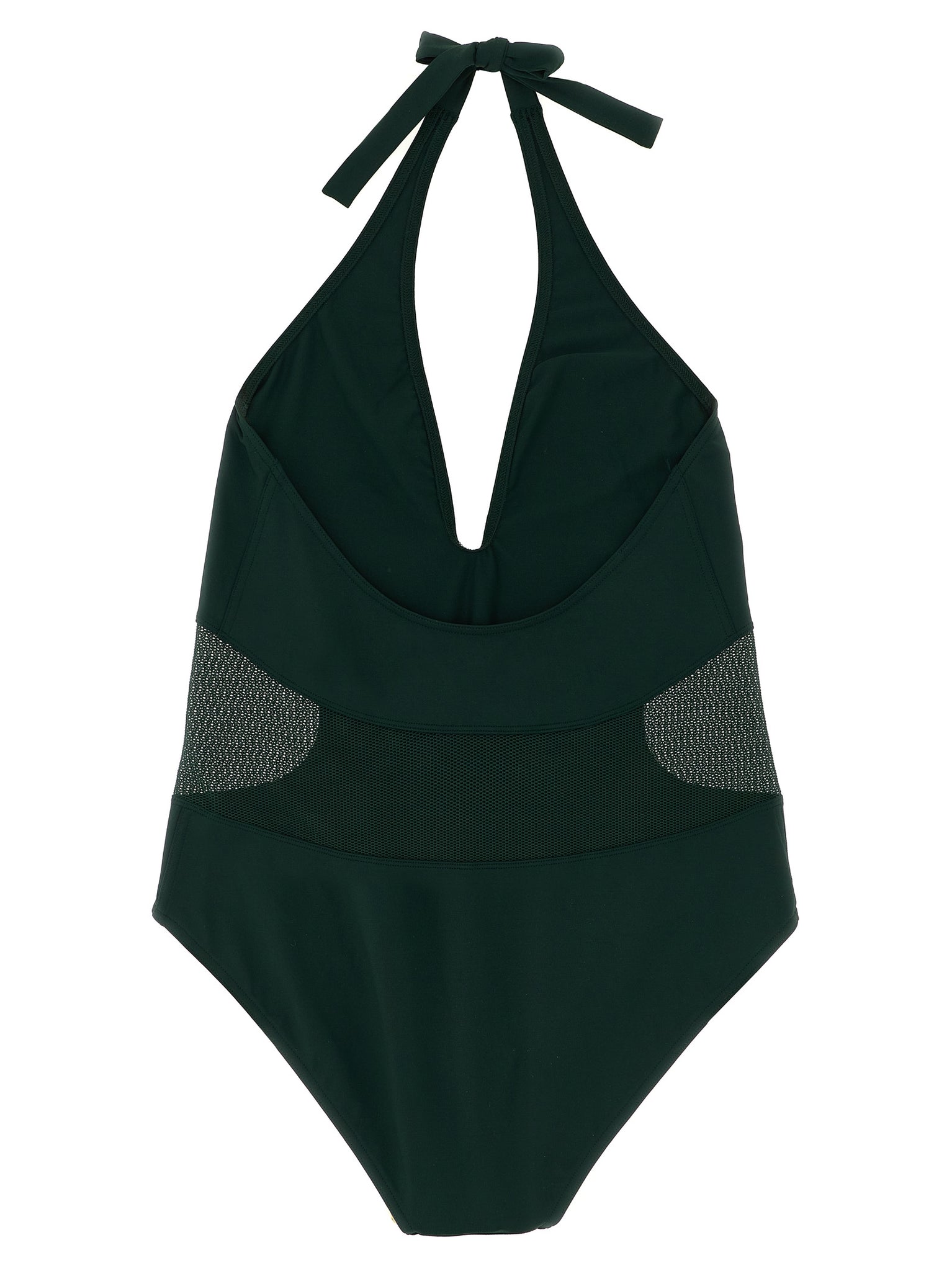 One-piece swimsuit 'Sophistique' fastened at the neck with bow, mesh insert at the back and on the hips. Size and Fit - True to size fit French sizing