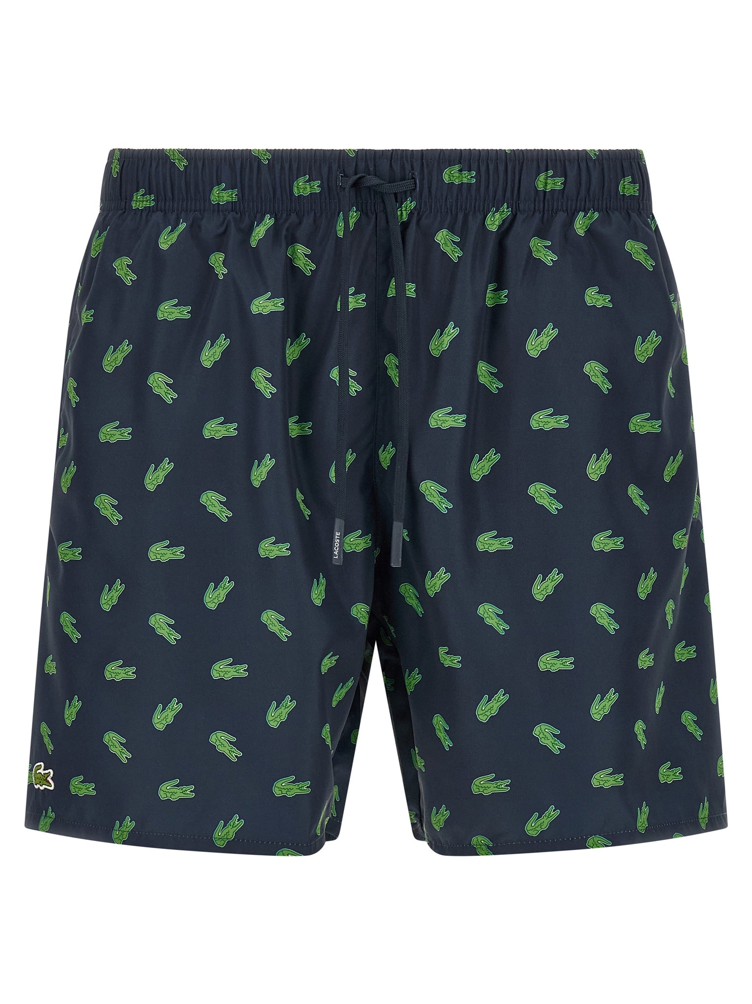 The Lacoste Crocodile Swimsuit offers quick-drying, lightweight performance and eco-conscious construction from recycled polyester for durable beachwear. It features an all-over crocodile print, front logo patch, drawstring elastic waistband, pockets and inner mesh briefs to balance comfort and function. True-to-size fit simplifies selection so you can shop confidently for your regular size.