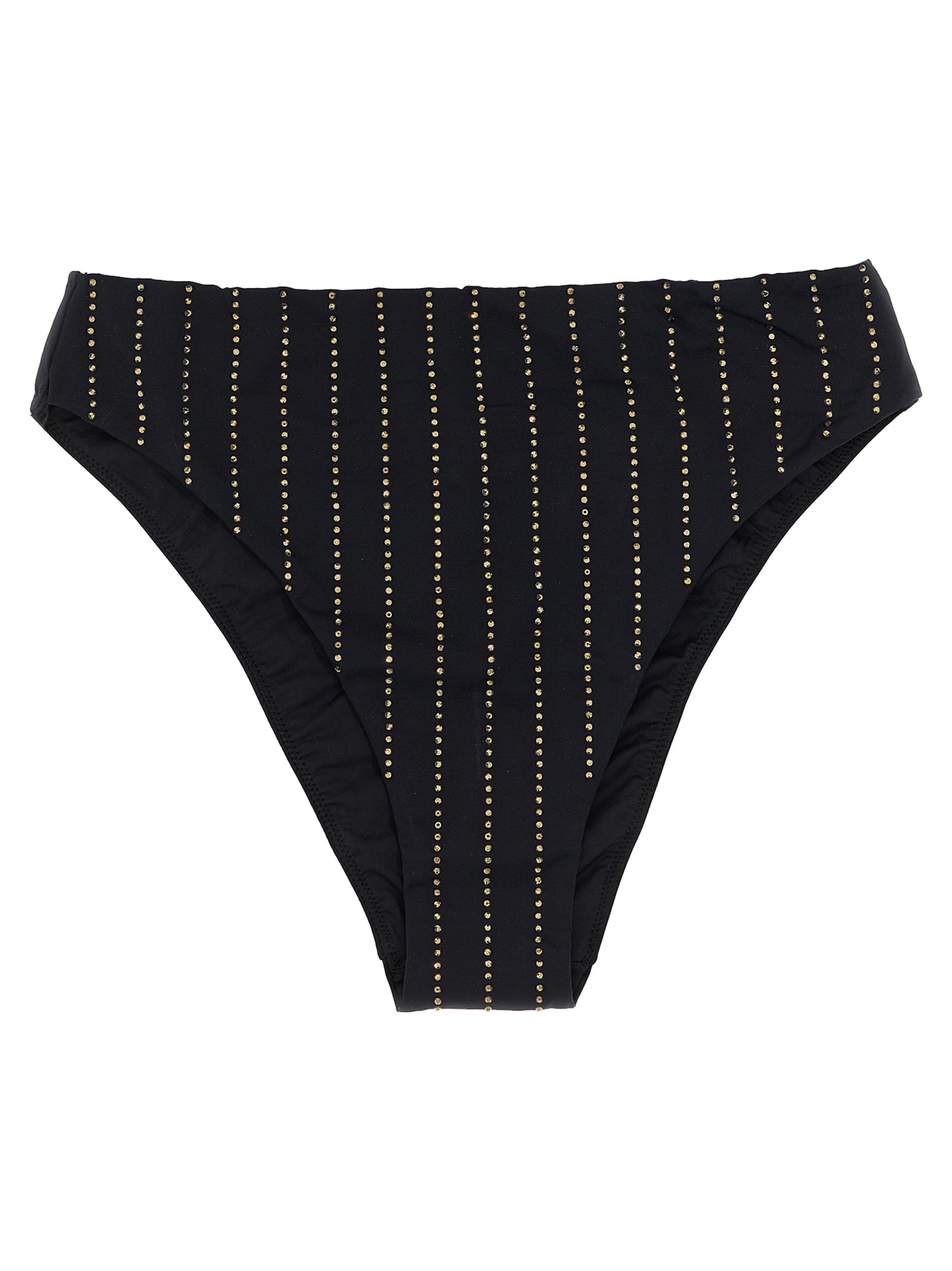 'sibilla' bikini bottoms in stretch fabric with rhinestone appliqué on the front, With high-cut style. Size and Fit - true to size fit