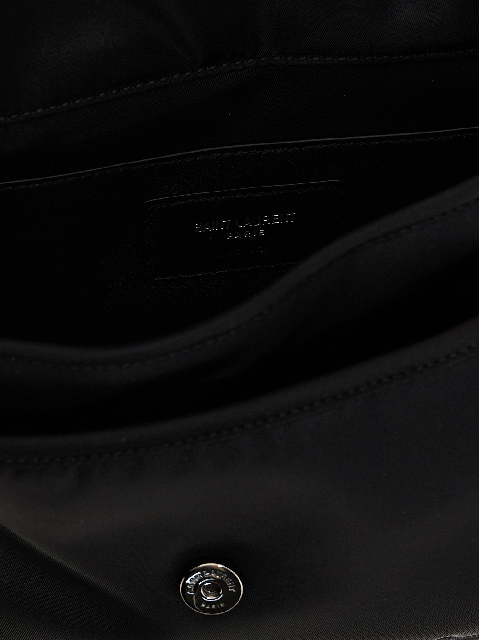 'Messenger Niki' nylon crossbody bag with snap button closure, front metal logo, adjustable shoulder strap. Size and Fit - W 21 x H 15 x D 6 cm