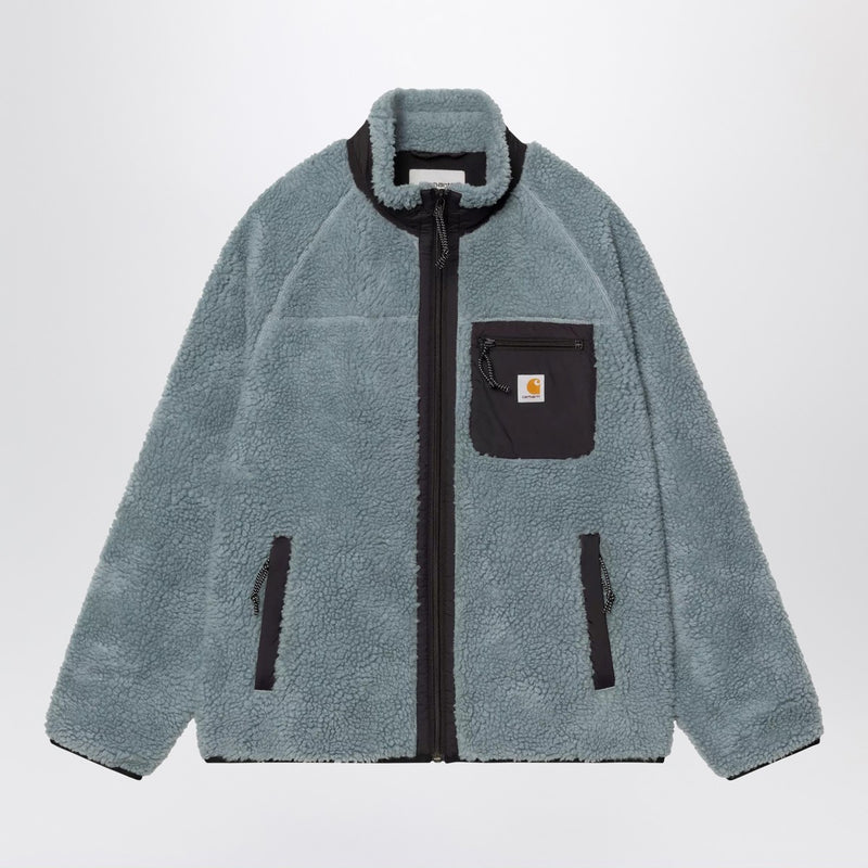 Carhartt WIP fleece in light blue-grey with contrasting nylon taffeta details, featuring chest pocket with logo label, mesh lining, zip front closure, side pockets, and long sleeves. Size and Fit - Model wears size L Model measurements: Height: 189 cm Chest: 104 cm Waist: 78 cm Hips: 95 cmMade in: Bangladesh