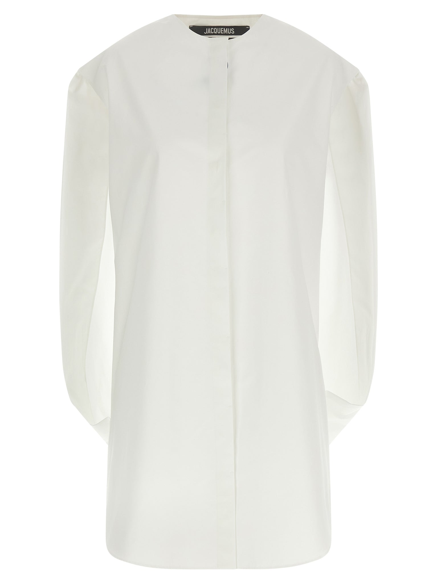 'La Robe Berlingot' mini dress in cotton poplin, tunic model with back cape, crew neck, front button closure, sleeveless. Size and Fit - true to size fit - FRENCH size