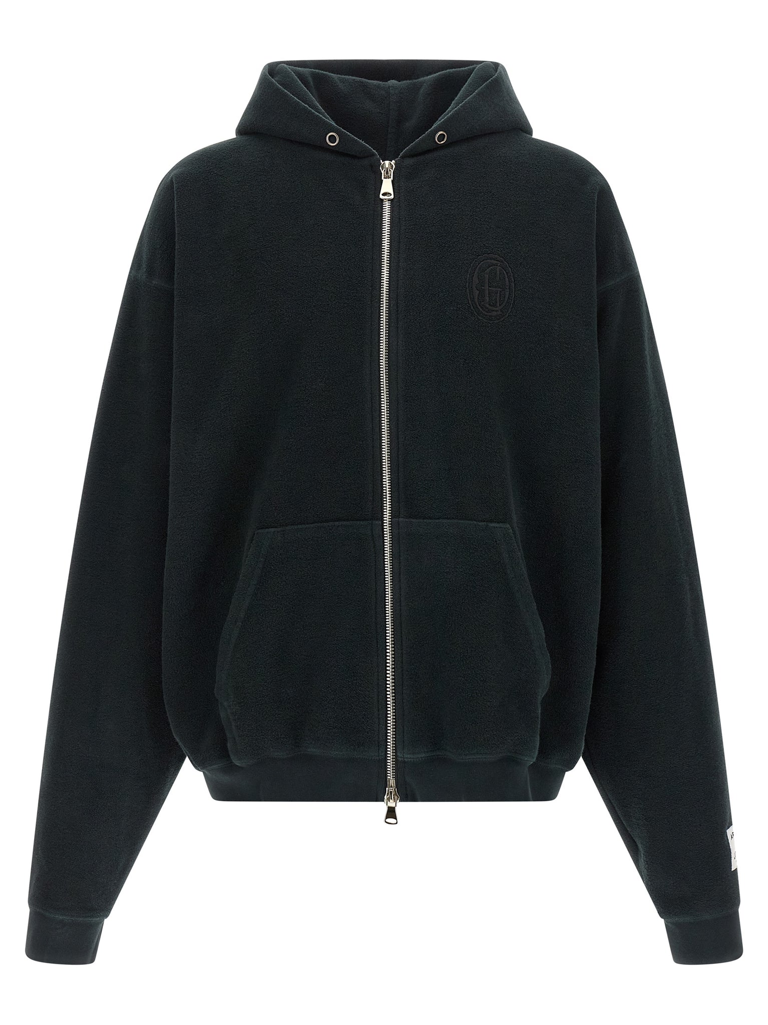 Inverted cotton hoodie with front zip closure, Front pockets, Maxi tonal logo embroidery at the back, Long sleeves with cuffs. Size and Fit - True to size fitMade in: United States