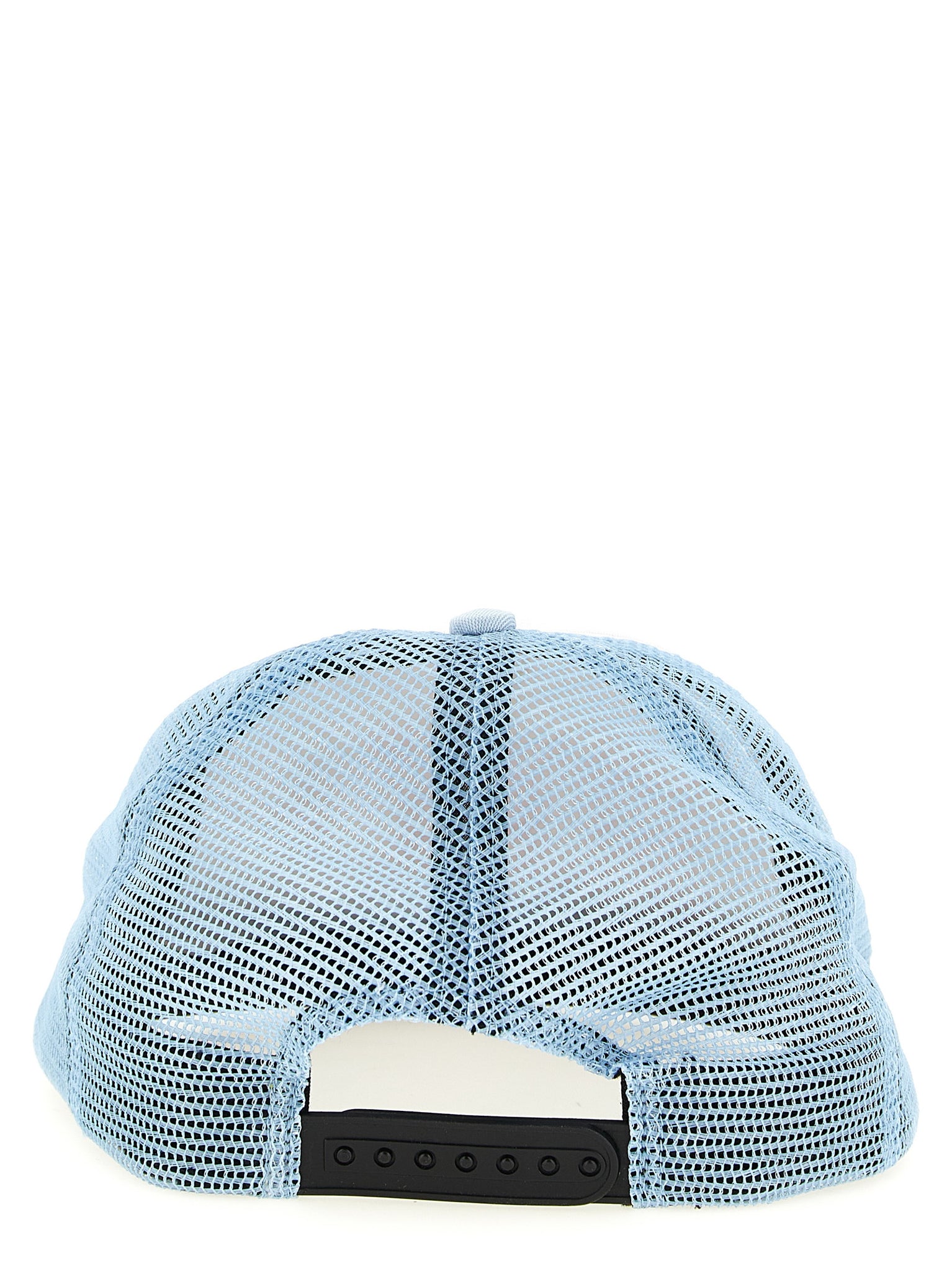Discover a light blue Gallery Dept. Gd Custom Cap that balances breathable mesh with technical fabric for durable, ventilated wear. The front features a 'custom paint & repair' graphic and the cap uses a 6-panel construction with an adjustable back strap for a one-size fit. Choose this piece to combine casual styling with functional comfort for everyday use.
