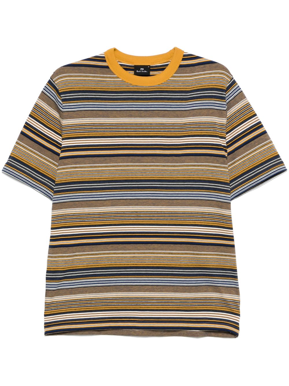 light brown mini logo tag horizontal stripe pattern crew neck Size and Fit - This piece fits true to size. We recommend you get your regular size. Model is 1,84m / 6ft 1in wearing size M