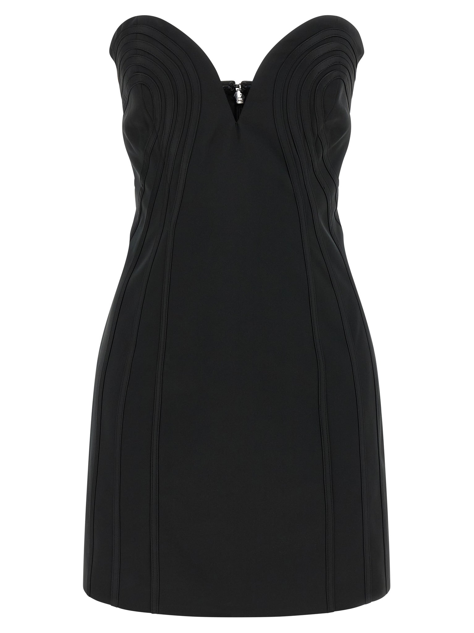'satin mini' satin dress with tone-on-tone decorations, Off-the-shoulder model with sweetheart neckline, Preformed cup and side cues, Back zip closure, Lining._x000d_ _x000d_ sustainable: product made from recycled polyester. Size and Fit - slim fit - GERMAN size