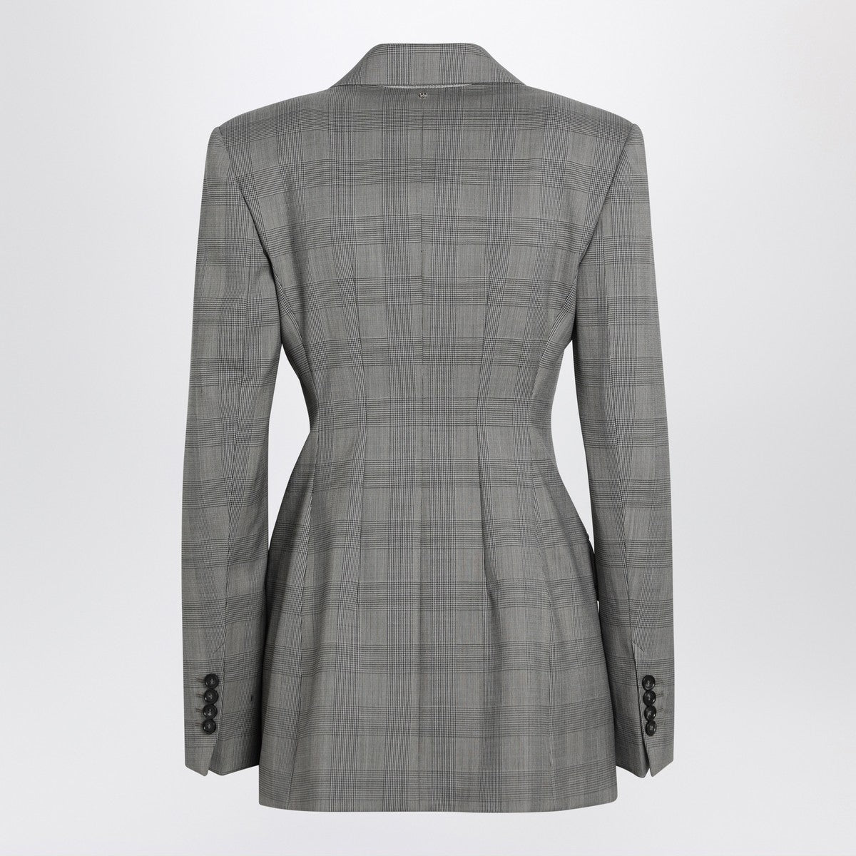 Double-breasted jacket by Sportmax in virgin wool with a grey and black Prince of Wales pattern, featuring pointed lapels, two flap pockets at the front, a welt pocket on the chest, long sleeves with buttoned cuffs, darts at the front and back, and a front button closure. Size and Fit - Model wears size 40 IT Model measurements: Height: 179 cm Chest: 82 cm Waist: 65 cm Hips: 90 cm