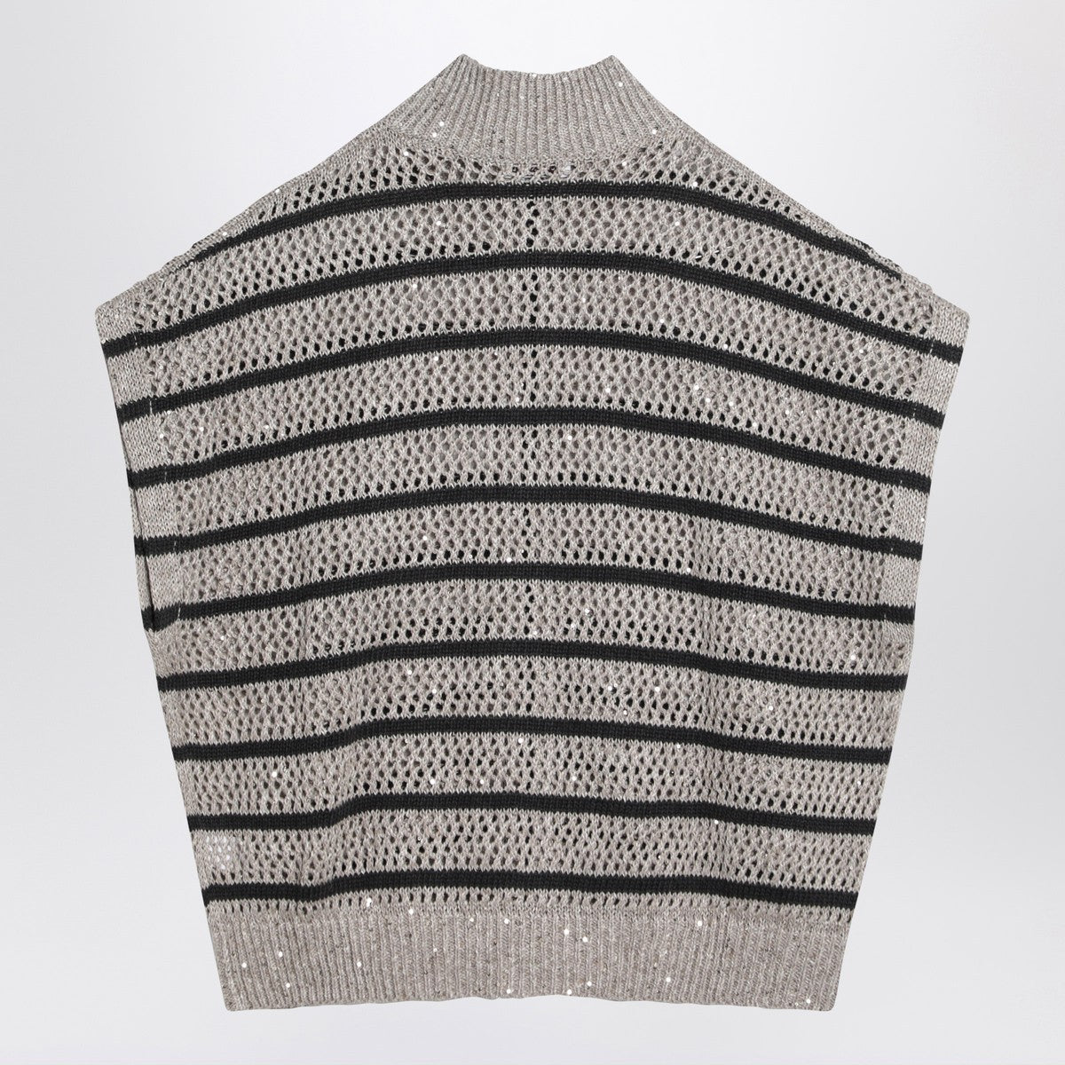 Brunello Cucinelli Striped mesh cardigan in linen blend