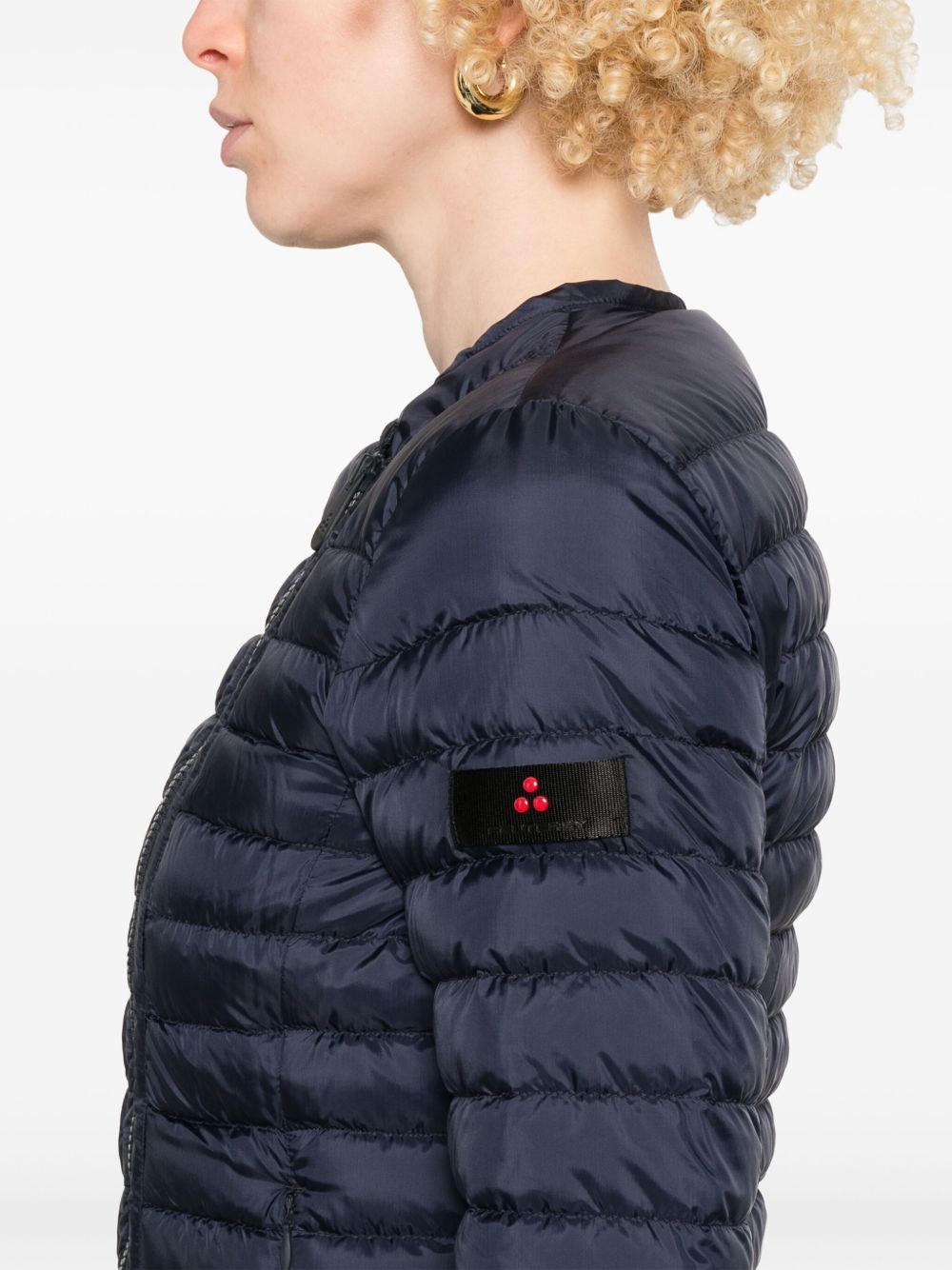 navu blue two-way zip fastening two side zip-fastening pockets crew neck logo patch at the sleevecorto + zip obliqua corto + zip obliqua Nylon down jacket Size and Fit - This piece fits true to size. We recommend you get your regular size. Model is 1,75m / 5ft 8in wearing size 40 (IT)