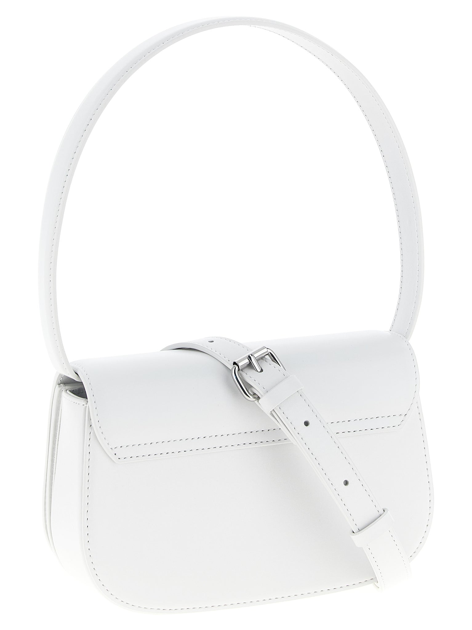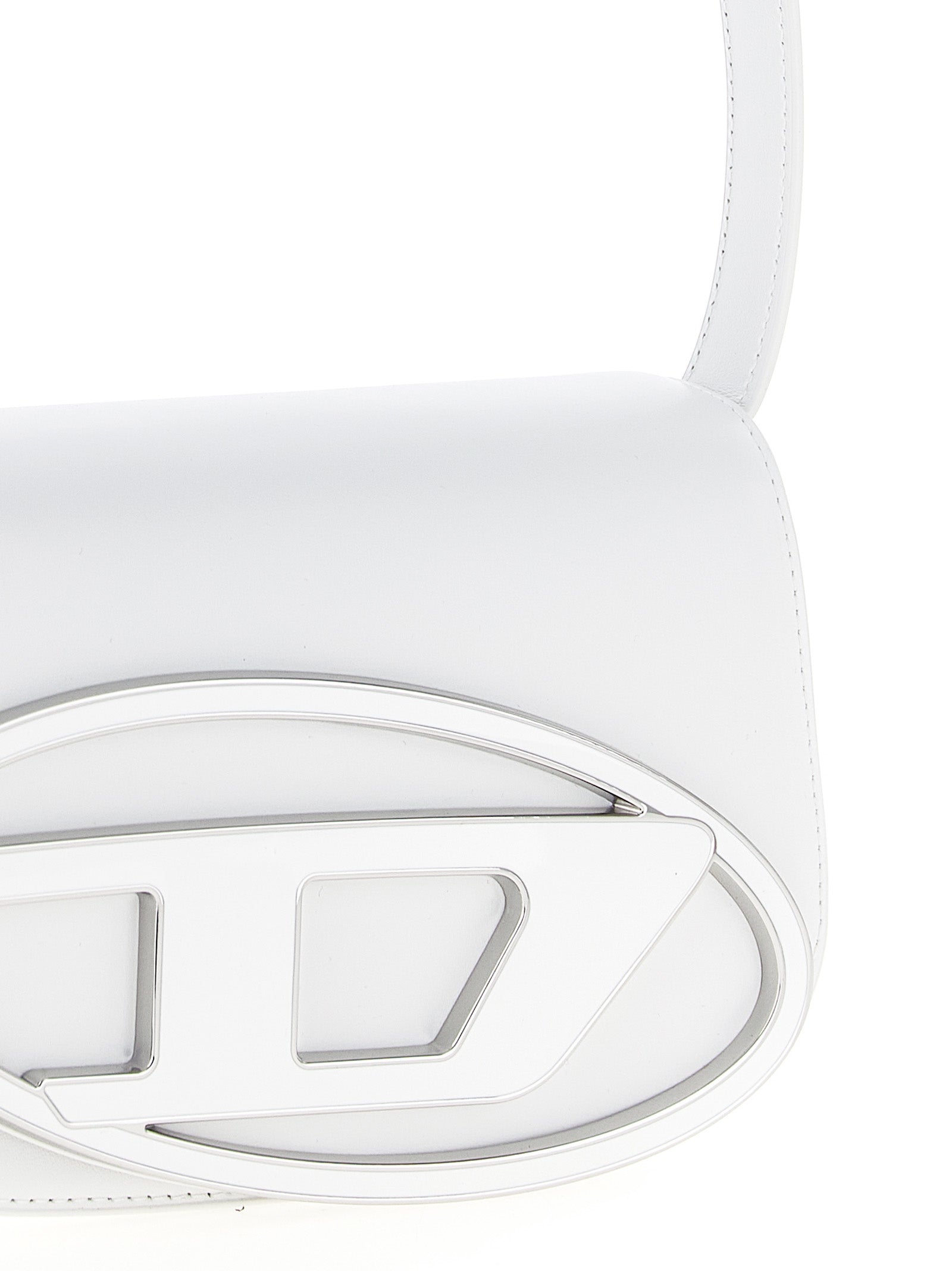 Leather '1DR' shoulder bag with flap closure and front maxi logo. Size and Fit - W 20 x H 12 x D 7 cm