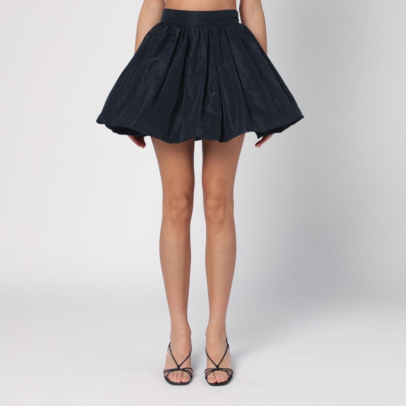 Mini skirt by Patou in recycled blue-black faille, characterized by a voluminous design, high waist, zip closure, and two side welt pockets. Size and Fit - La modella indossa la taglia 36 FR Misure modella: Altezza: 180 cm Petto: 85 cm Vita: 66 cm Fianchi: 89 cm