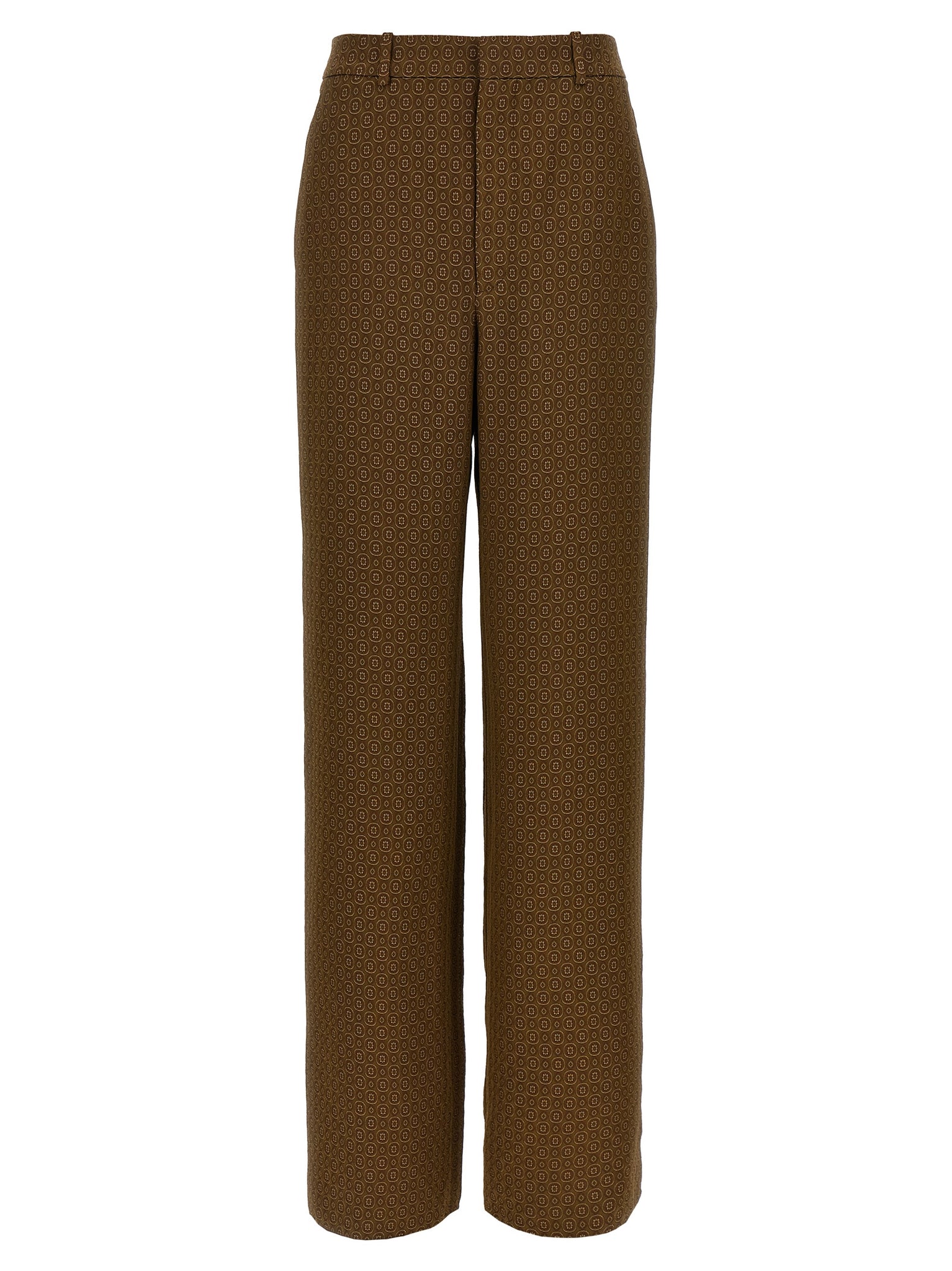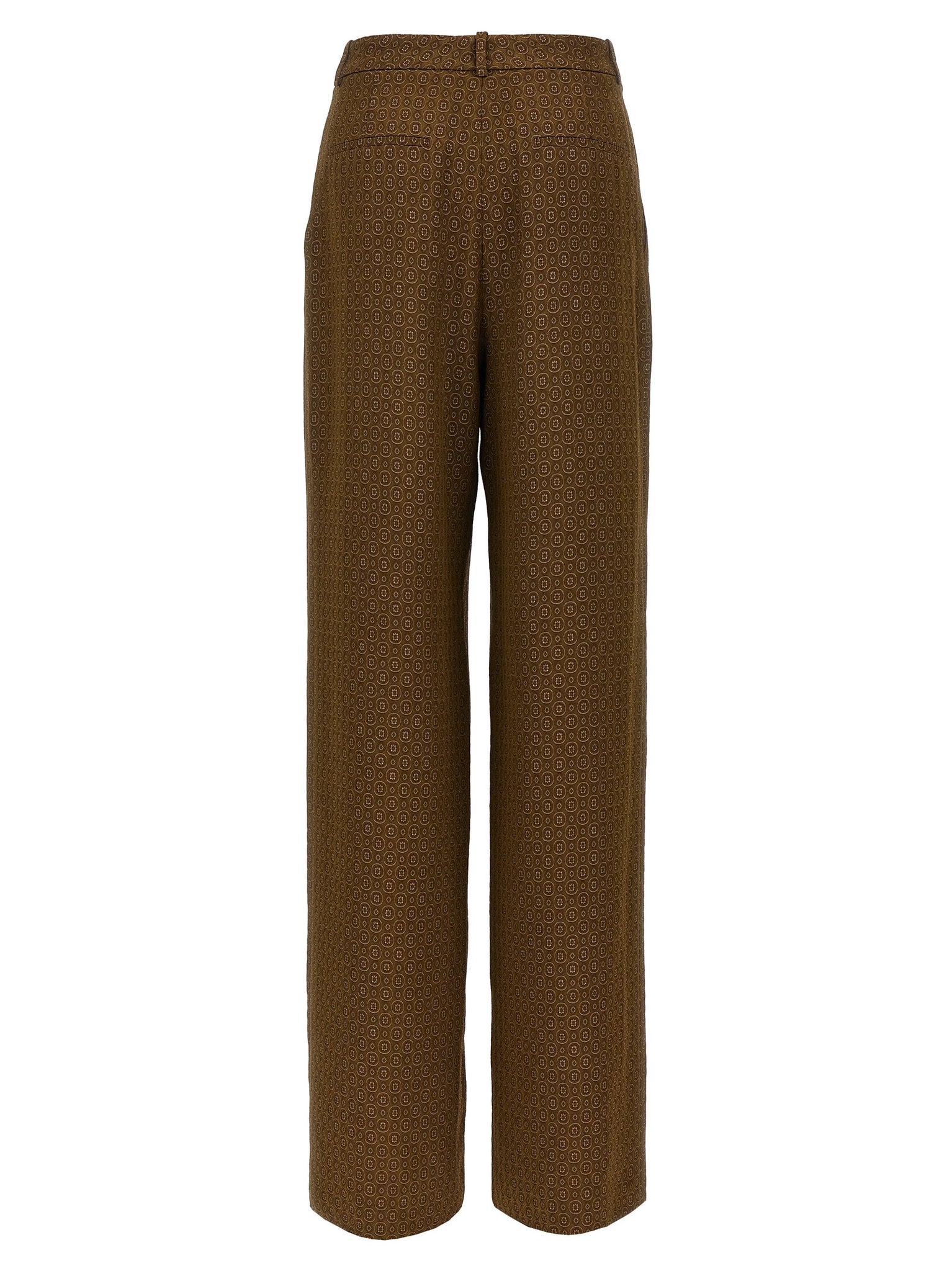 Viscose twill pants, jacquard 'Medaglioni' pattern, slightly loose fit, straight leg, front zip and hook closure, side pockets. Size and Fit - True to size fit French sizing