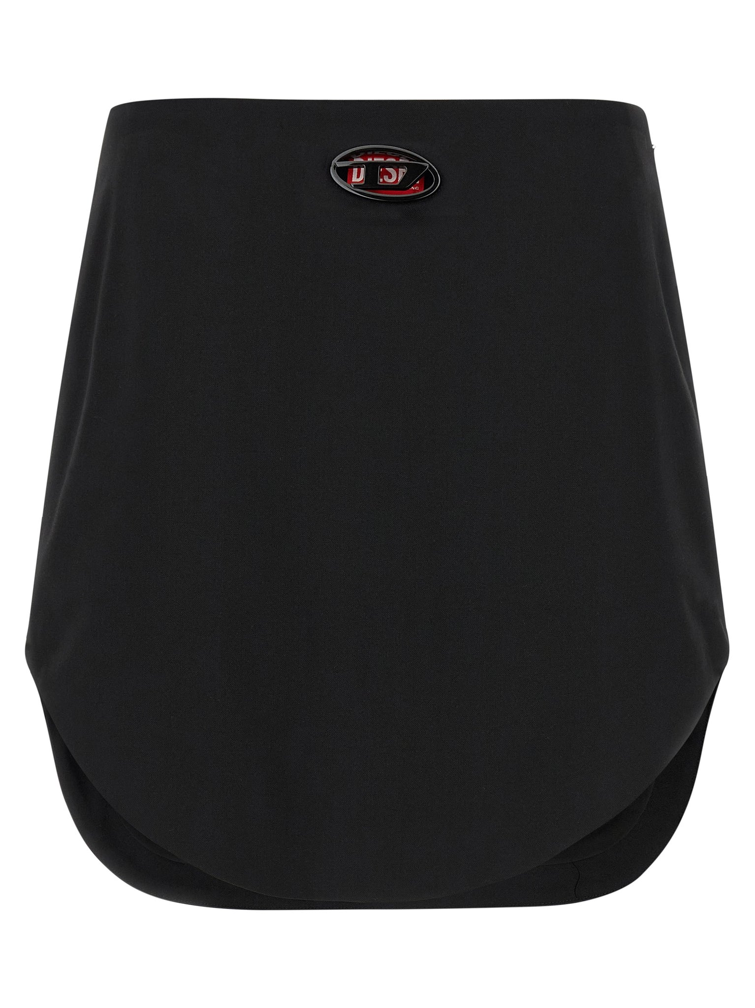 Discover a tailored mini skirt from Diesel crafted in wool twill that delivers structure with a refined silhouette and pockets for everyday ease. Tone-on-tone metal 'oval d' cut-out detail and an asymmetrical hem add a distinctive visual edge, while the side zip closure ensures a smooth fit. Designed to be true to size, this black mini balances sartorial detail with practical wearability.